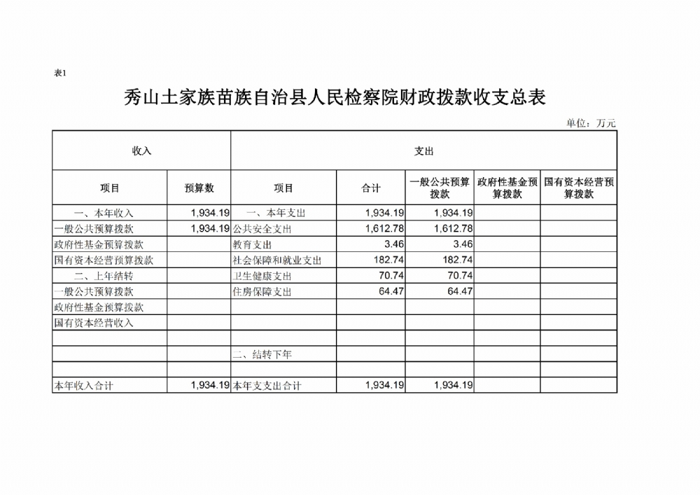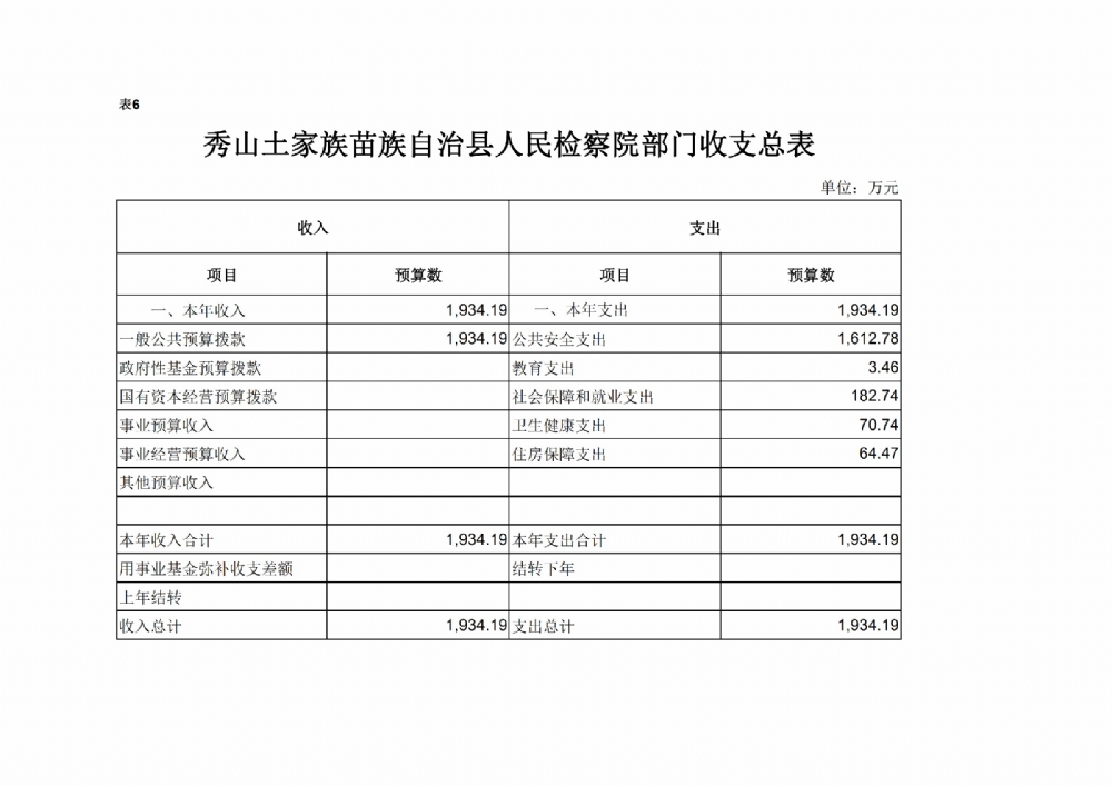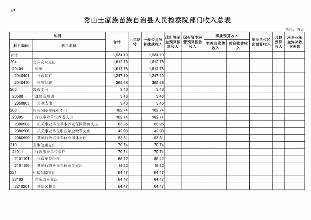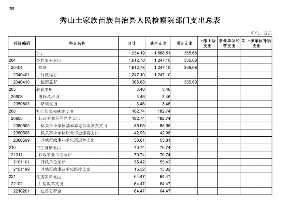 重庆市秀山土家族苗族自治县人民检察院2020年部门预算公开