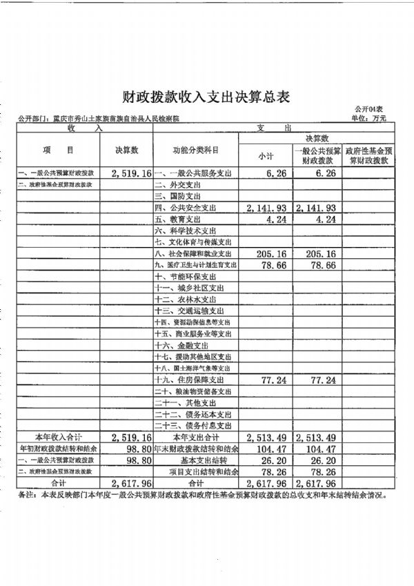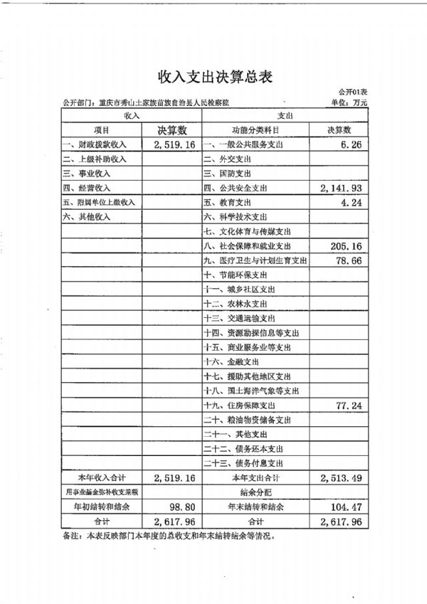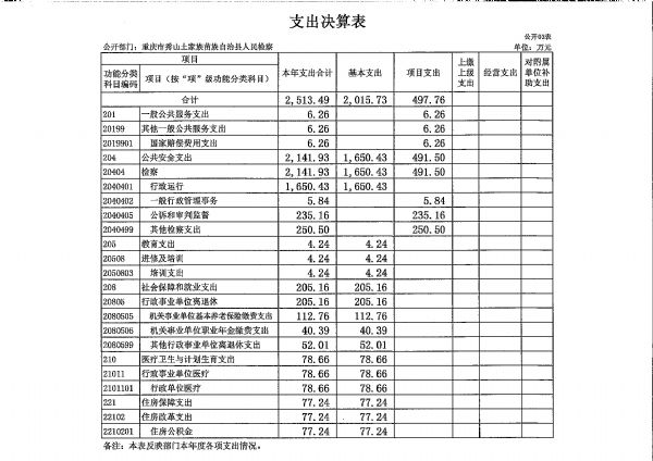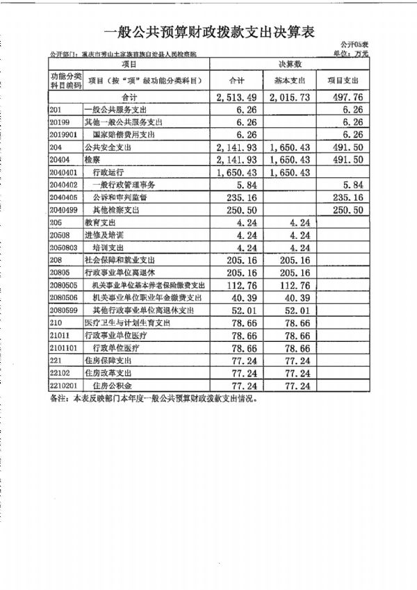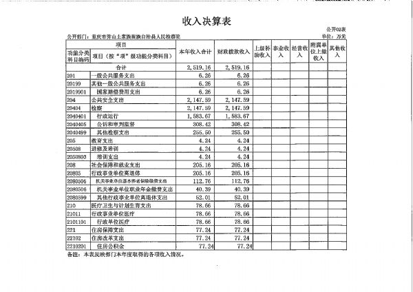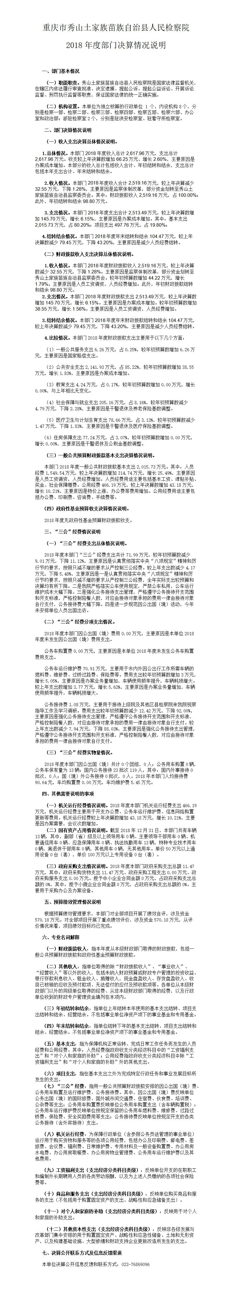 重庆市秀山土家族苗族自治县人民检察院2018年度部门决算公开