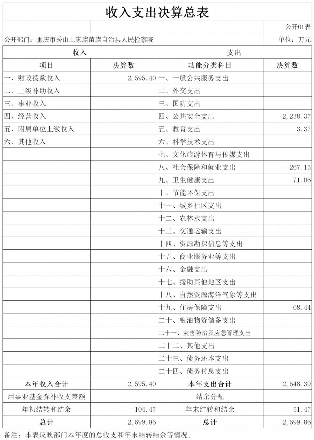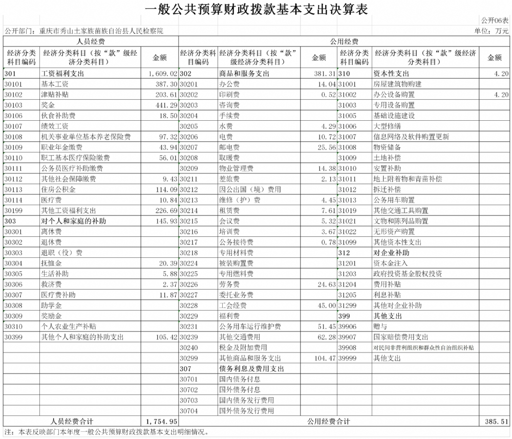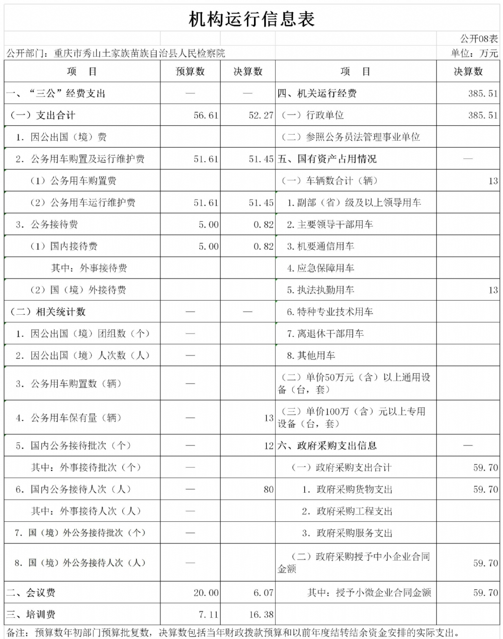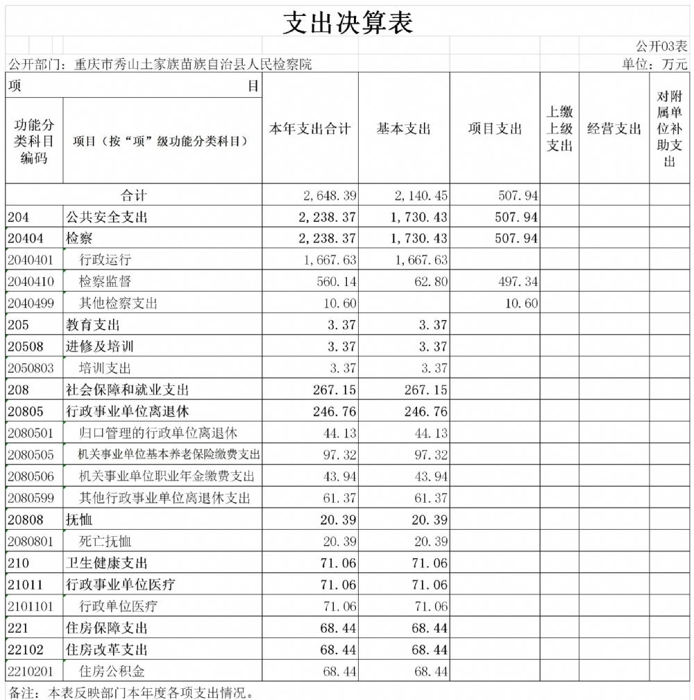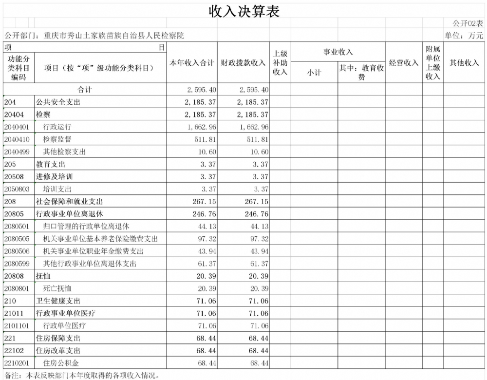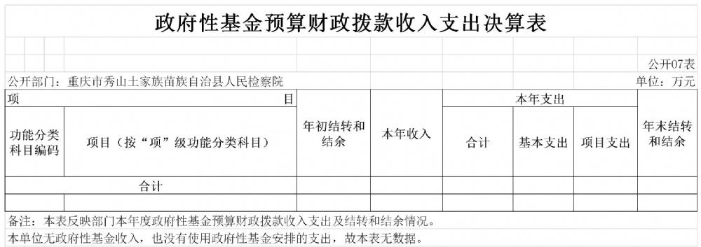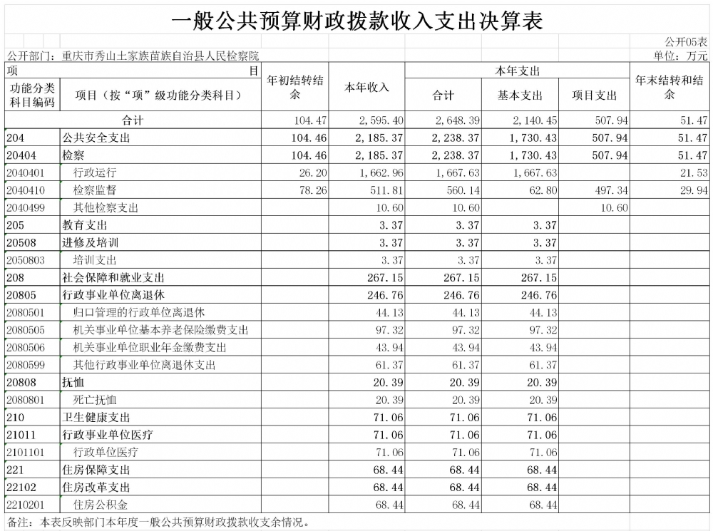 重庆市秀山土家族苗族自治县人民检察院2019年度部门决算公开
