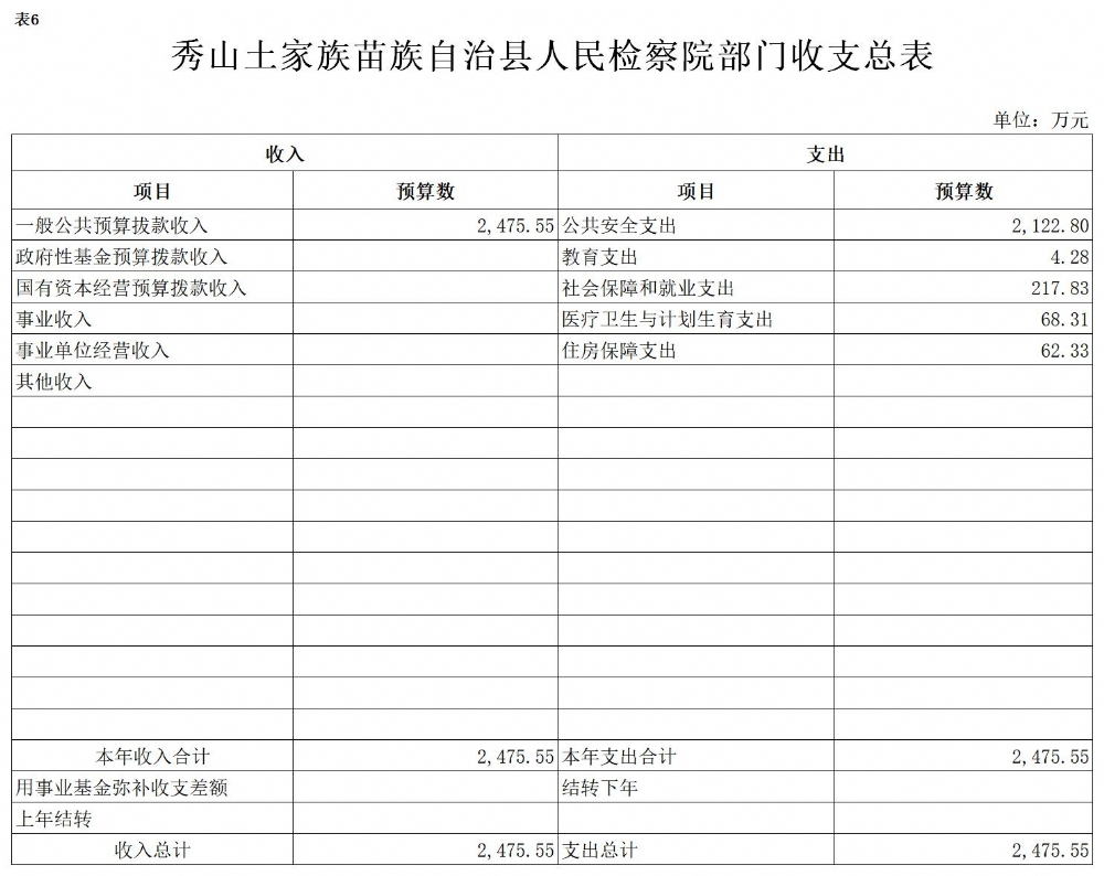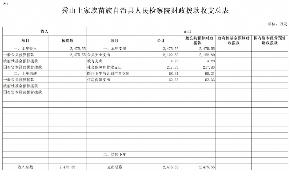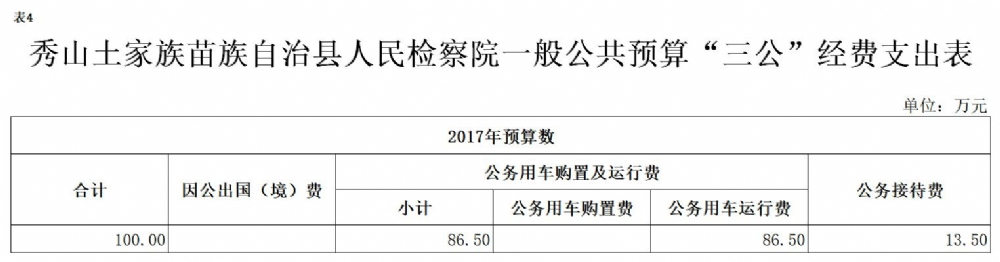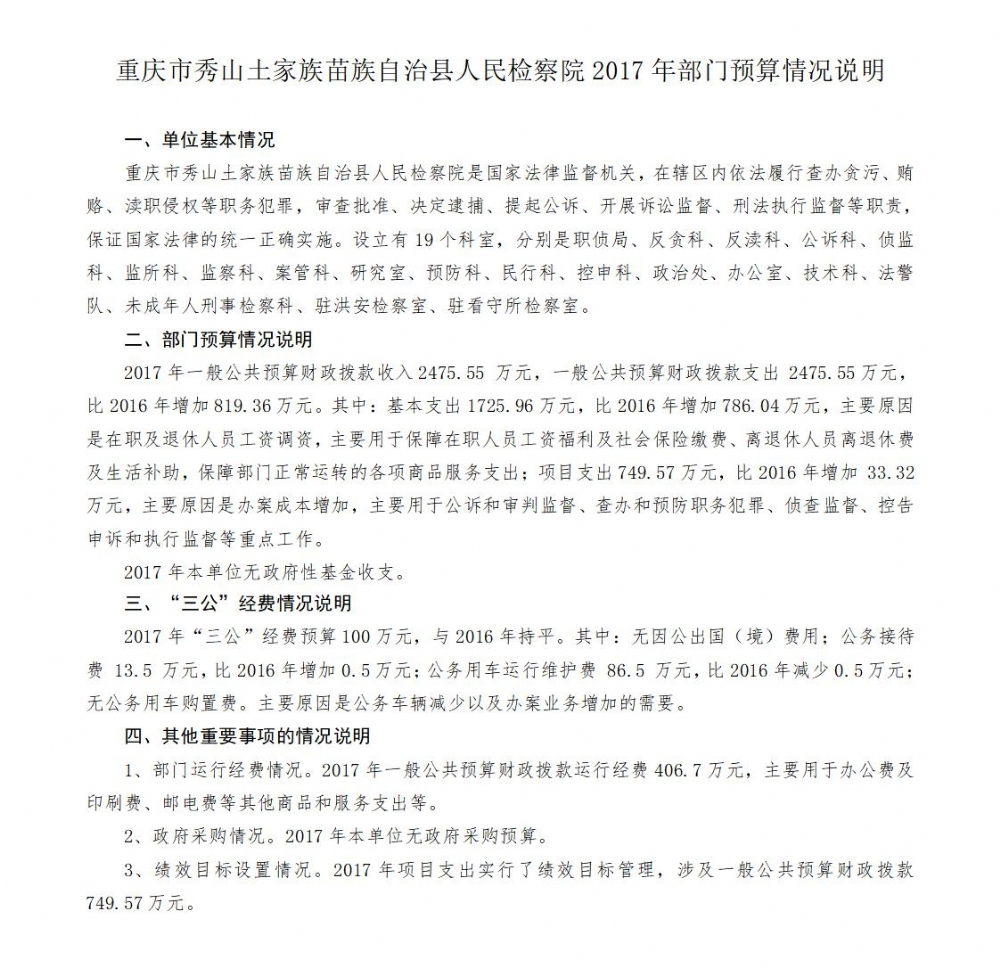 2017年秀山县人民检察院预算公开