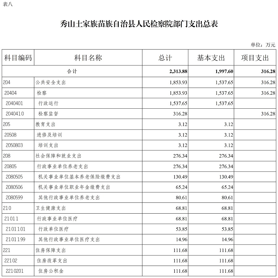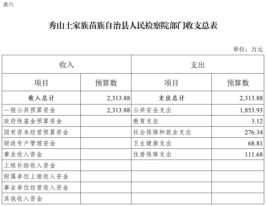 重庆市秀山土家族苗族自治县人民检察院2023年部门预算公开
