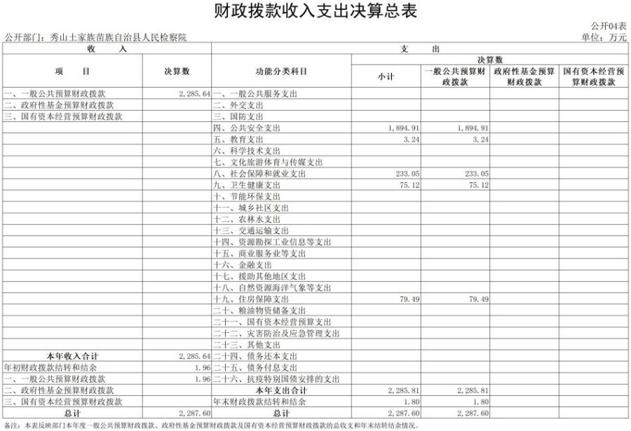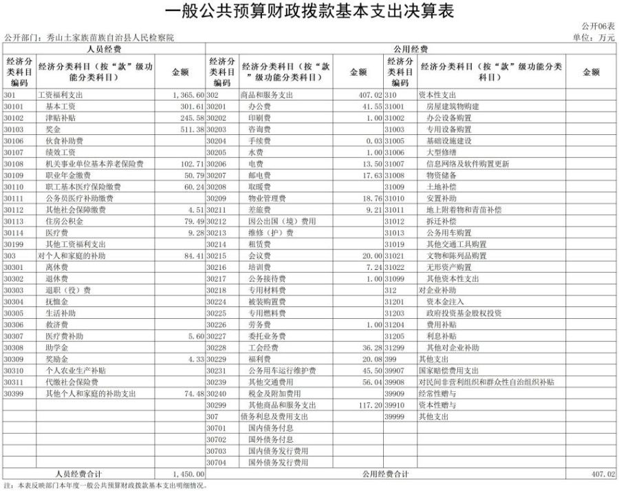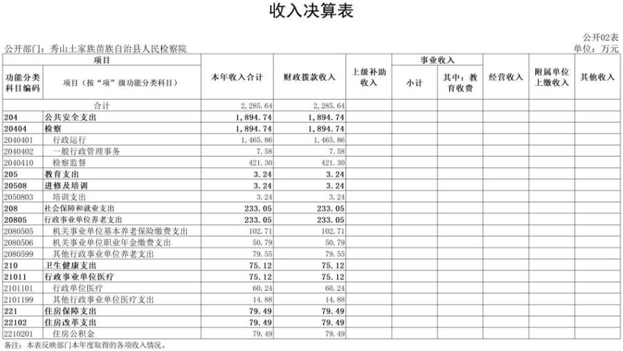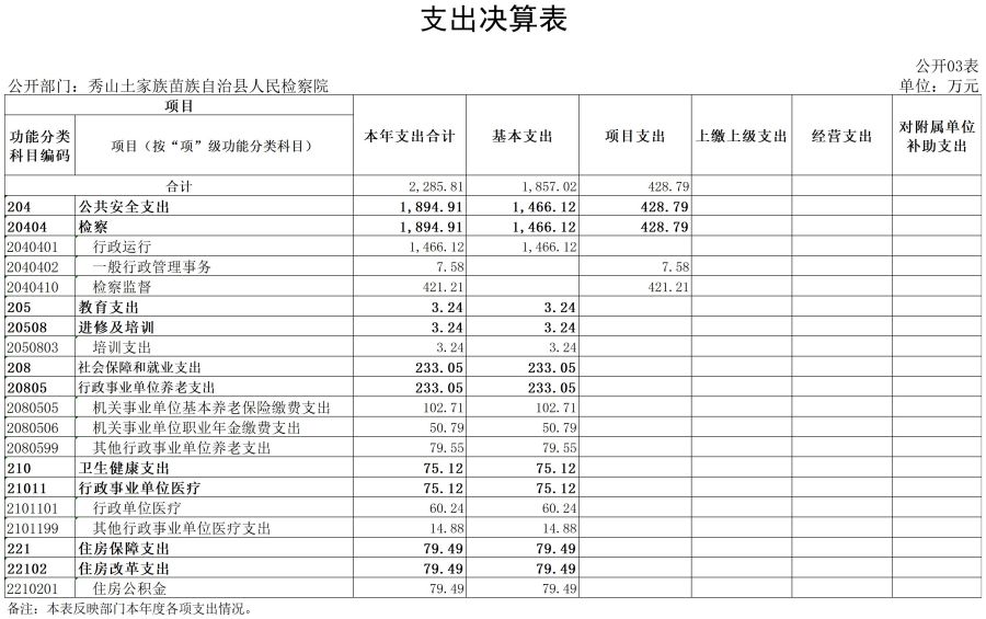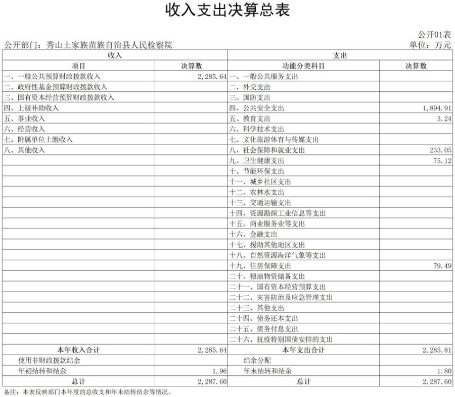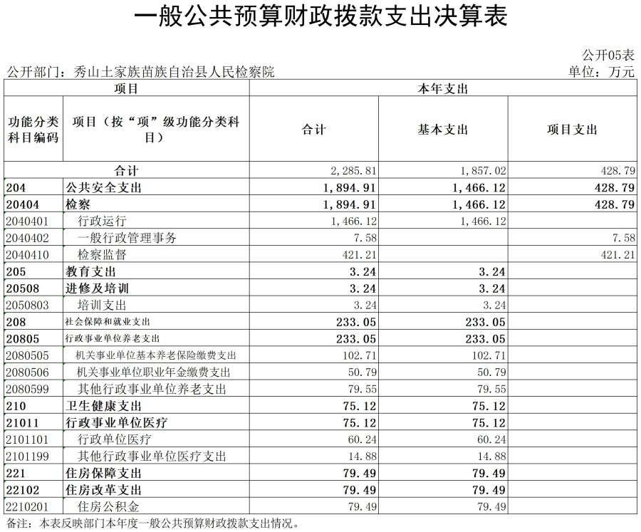 重庆市秀山土家族苗族自治县人民检察院2022年度部门决算公开