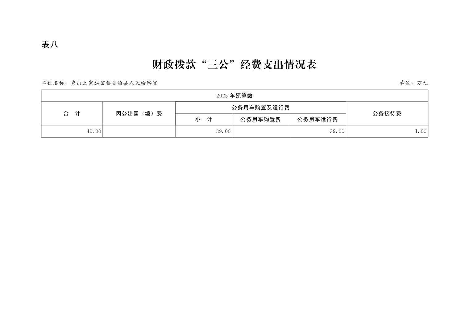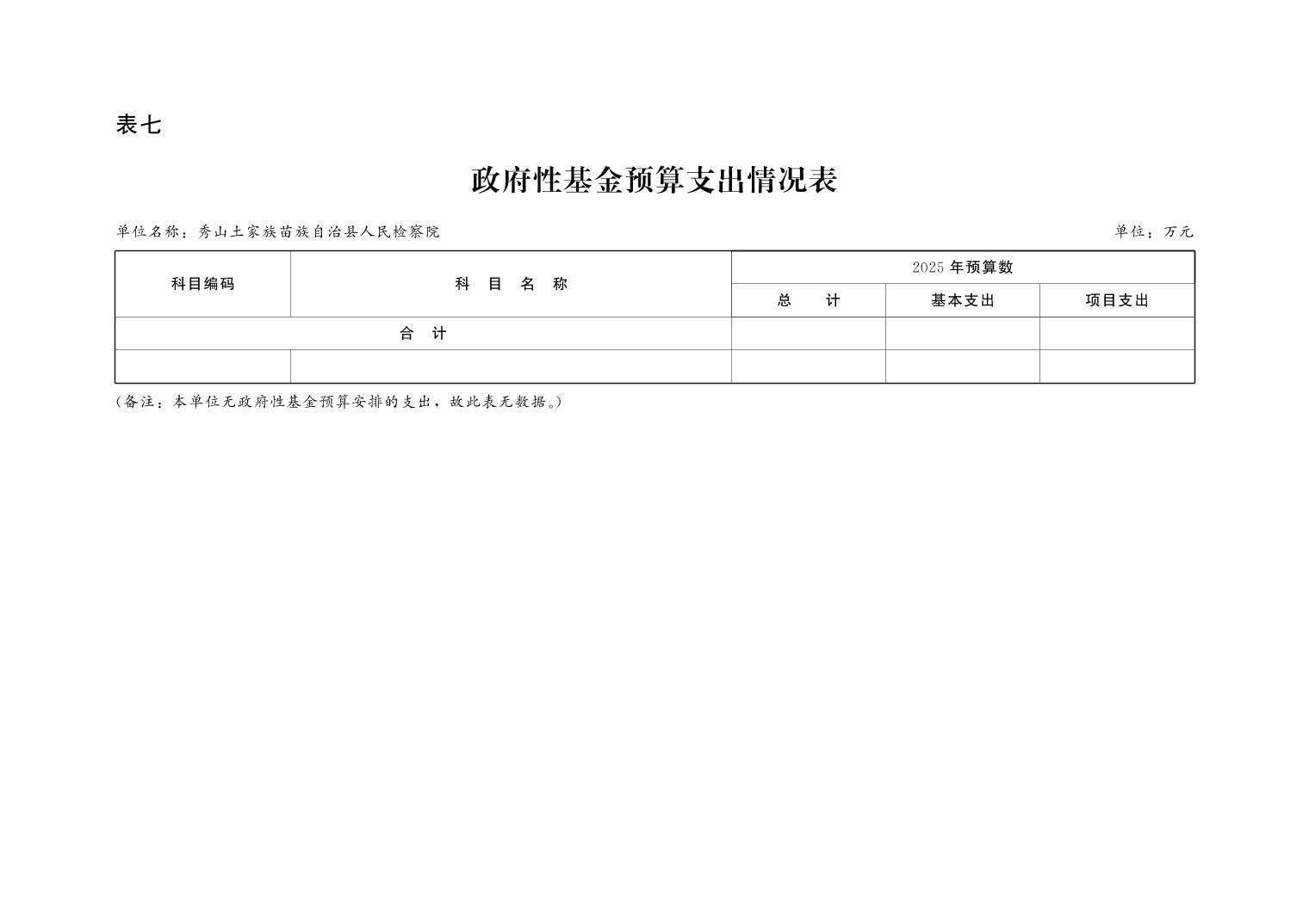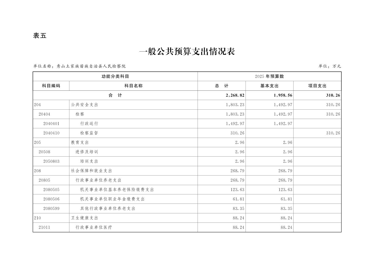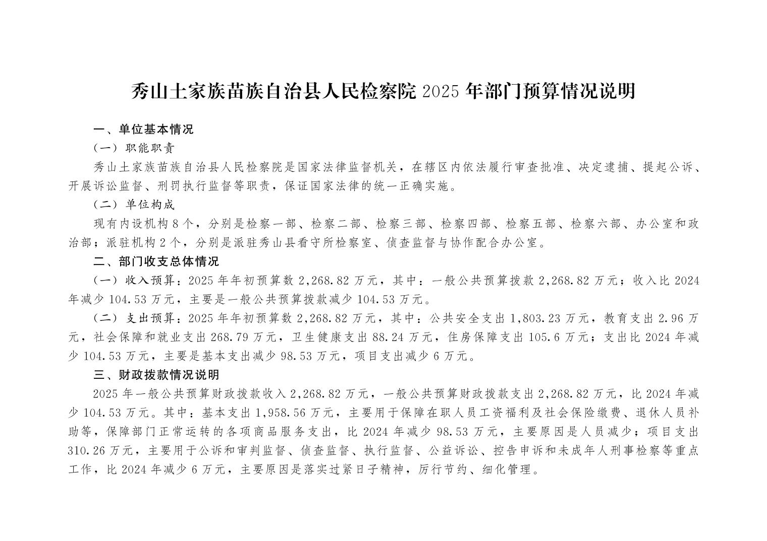 重庆市秀山土家族苗族自治县人民检察院2025年部门预算公开