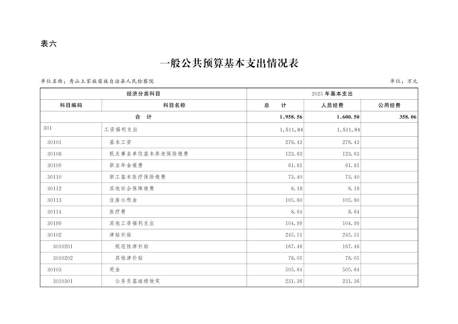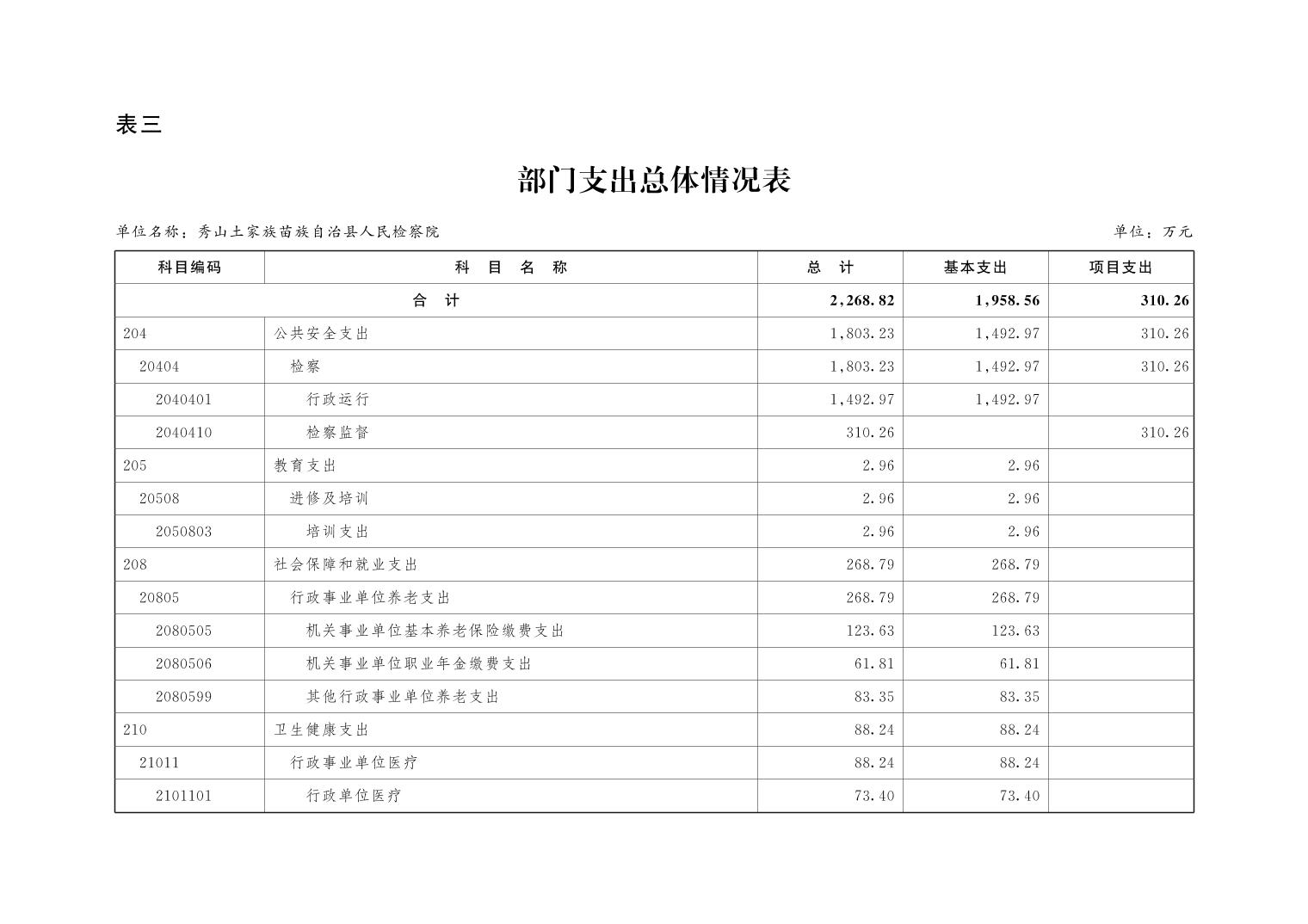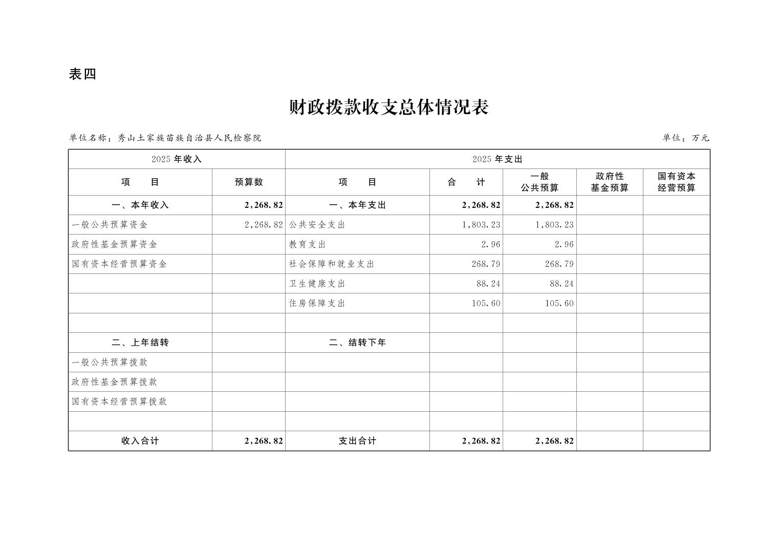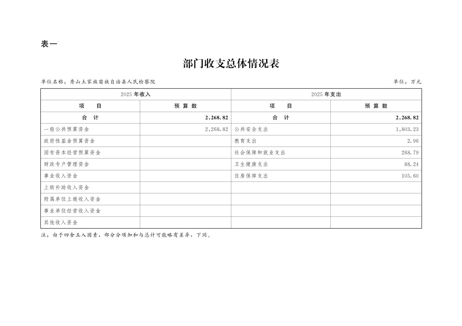 重庆市秀山土家族苗族自治县人民检察院2025年部门预算公开