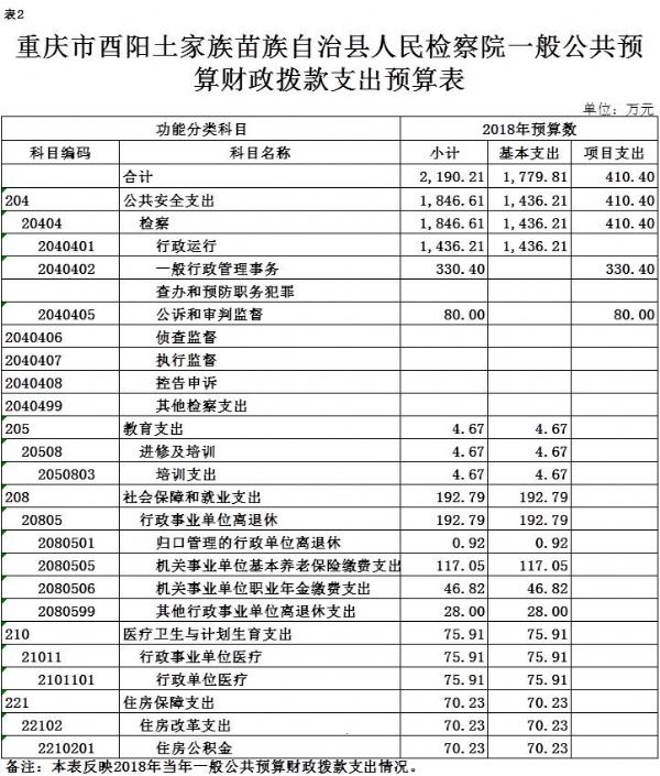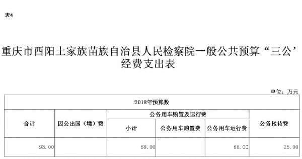 重庆市酉阳土家族苗族自治县人民检察院2018年部门预算情况说明