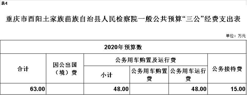 2020年“三公”经费预算63万元,比2019年减少6万元。其中:因公出国(境)费用0万元,与2019年持平;公务接待费15万元,与2019年持平;公务用车运行维护费48万元,比2019年减少6万元,主要原因是严格落实公车使用规定,严禁公车私用,公车运行维护成本大幅下降;公务用车购置费0万元,与2019年持平。