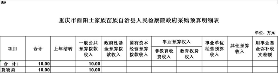 2、政府采购情况。本单位政府采购预算总额10万元:政府采购货物预算10万元、政府采购工程预算0万元、政府采购服务预算0万元;其中一般公共预算拨款政府采购10万元:政府采购货物预算10万元、政府采购工程预算0万元、政府采购服务预算0万元。