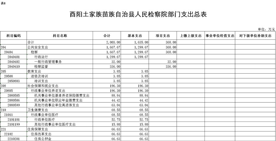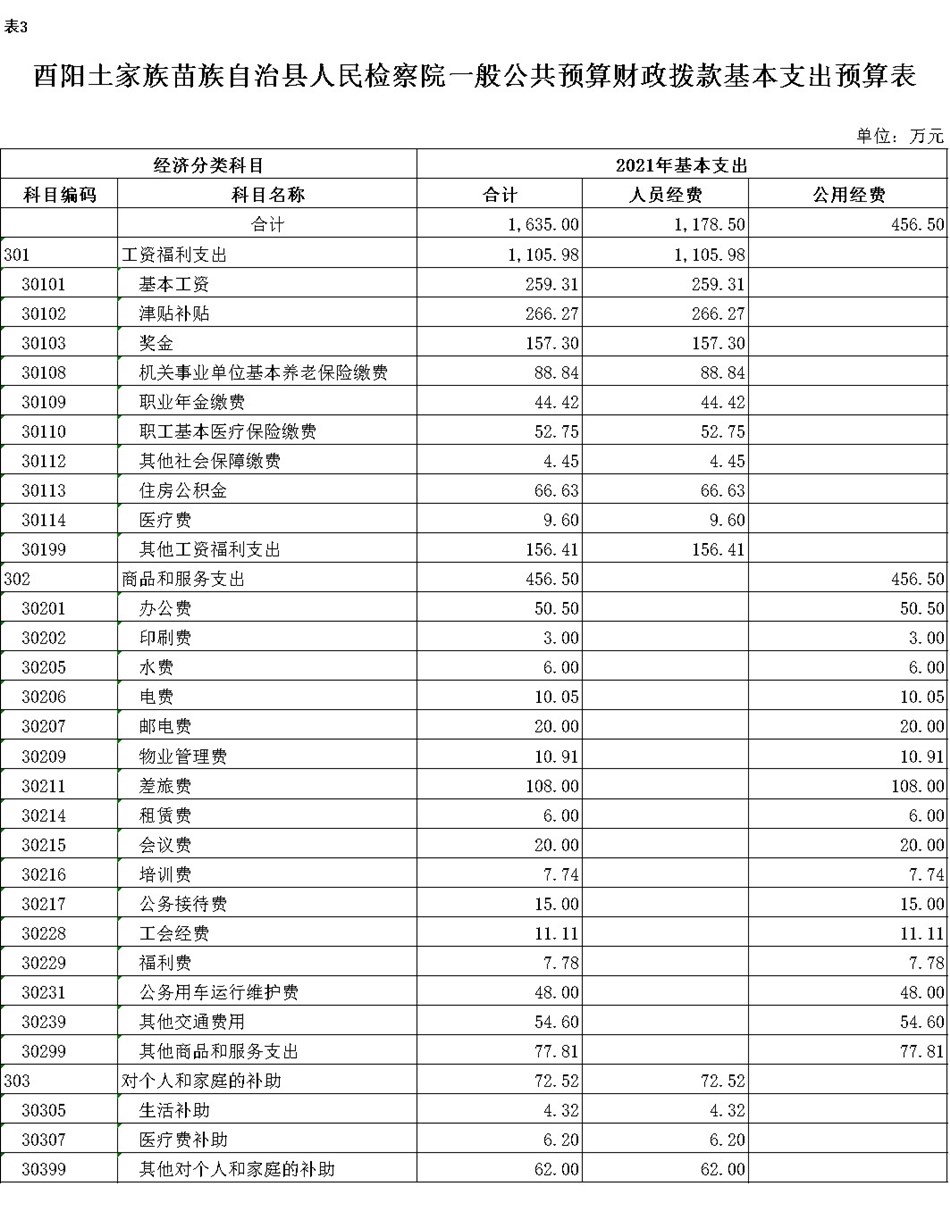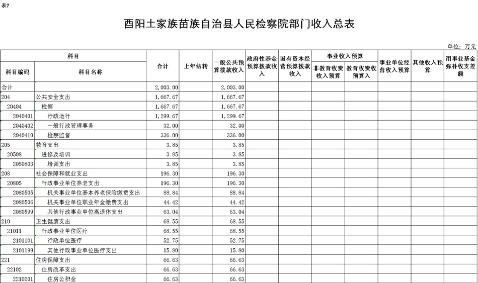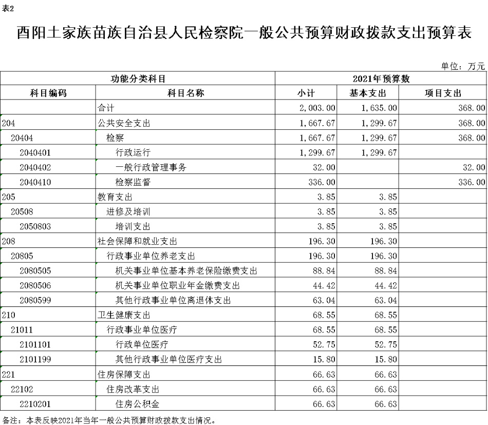 2021年一般公共预算财政拨款收入2003万元,一般公共预算财政拨款支出2003万元,比2020年增加22.6万元,其中:基本支出1635万元,比2020年增加38.22万元,主要原因是人员增加及政策性增资,主要用于保障在职人员工资福利及社会保险缴费,退休人员补助等,保障部门正常运转的各项商品服务支出;项目支出368万元,比2020年减少15.62万元,主要原因是按照财政要过紧日子的要求,压减一般性项目支出,主要用于公诉和审判监督、侦查监督、执行监督、控告申诉、民行监督、公益诉讼等重点工作。