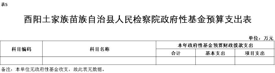 酉阳土家族苗族自治县人民检察院2021年未使用政府性基金预算拨款安排的支出,与上年保持一致。