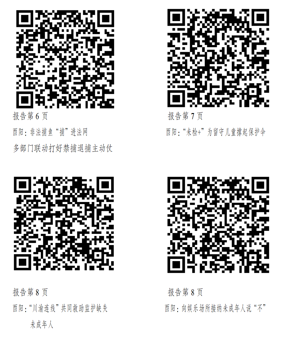 助力未成年人向阳而生、逐光而行。从严惩处侵害未成年人犯罪,受理审查逮捕案件19件43人,批准逮捕10人,提起公诉29人。全面落实未成年人检察工作机制,强化对被侵害未成年人综合保护,开展涉案未成年人心理测评和心理疏导12人次、亲职教育4次。办理罗某强奸案,针对受害人肖某父母离异且父亲在监狱服刑、母亲在四川生活,导致缺失监护的特殊情况,实施“川渝连线”提供综合保护,帮助肖某重拾生活信心。依托办案参与社会治理,对酒吧、KTV和宾馆违规接待未成年人等问题,发出诉前检察建议7份,持续净化校园周边环境。推行专业化办案,会同公安机关、妇联等部门建立未成年被害人“一站式”救助基地,构建未成年人案件“捕、诉、监、防、教”一体化办理新模式。同步探索对涉罪未成年人的帮教,向附条件不起诉人代某的监护人发出首份“督促监护令”,协同挽救“迷途”少年。
