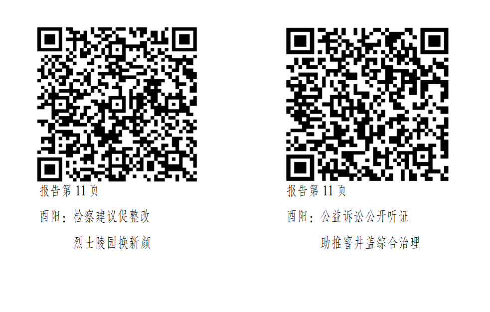 成绩属于过去,未来任重道远。回顾过去五年,我们清醒认识到,当前检察工作仍然存在一些问题和不足:一是聚焦“国之大者”谋划推进检察工作的针对性还不够强;二是围绕全县战略目标提供检察服务保障还不够充分;三是队伍素能与新时代人民群众对检察工作的新要求还不够适应。针对这些问题,我们将精准施策、持续发力、全面改进。在此,也真诚期待各位代表、委员对我们提出宝贵意见和建议,助推酉阳检察工作再上新台阶!