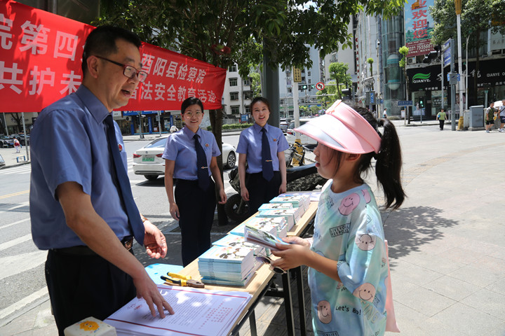 为深化“共护未来”依法严厉惩治性侵害未成年人犯罪专项行动,2022年7月6日,我院联合四分院走进酉阳部分校园、社区及培训机构,广泛开展普法宣传。