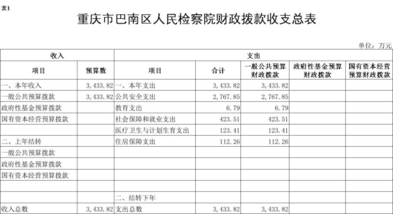 附:重庆市巴南区人民检察院预算公开相关表册(表1至表8)