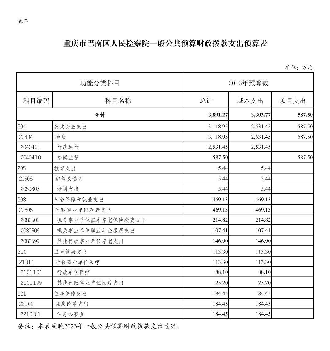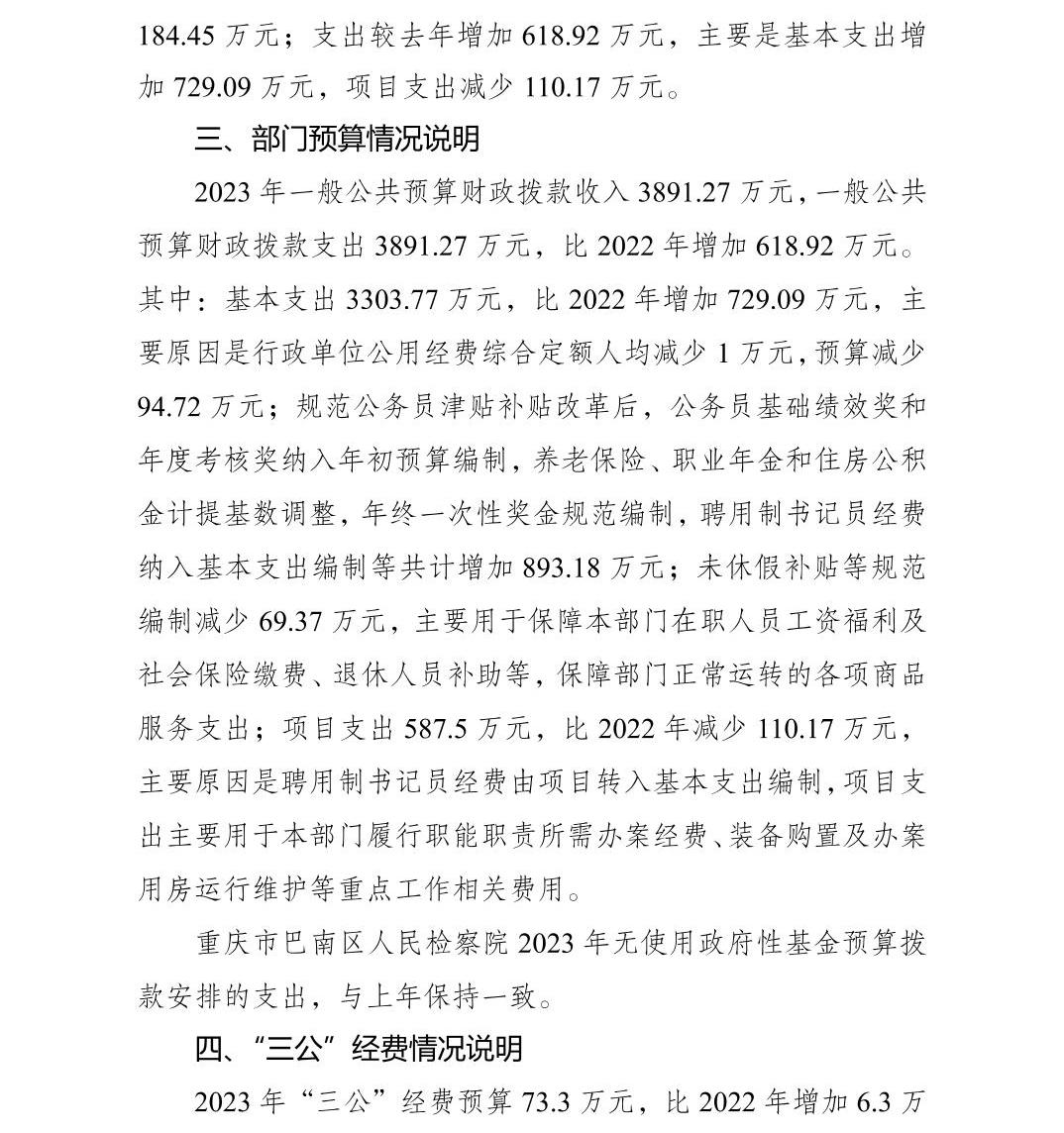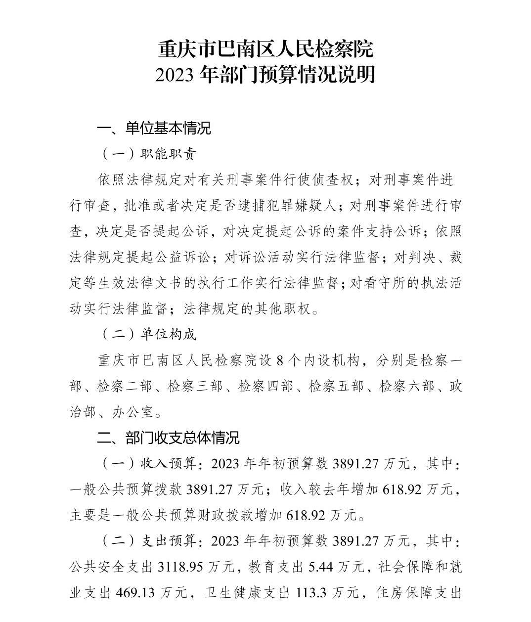 重庆市巴南区人民检察院2023年部门预算公开