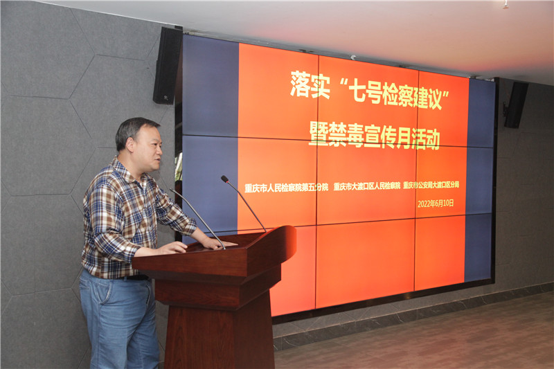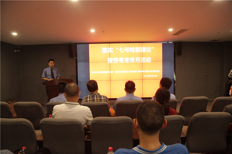 为深入贯彻落实“七号检察建议”,促进寄递行业健康持续发展,同时按照禁毒宣传月的有关工作部署,6月10日,重庆市检察院第五分院联合大渡口区检察院、大渡口区公安分局开展落实“七号检察建议”暨禁毒宣传活动,邀请了重庆市邮政管理局第四分局及京东、申通、圆通等十余家快递企业员工代表走进该区禁毒教育基地,实地参观学习、交流发言。