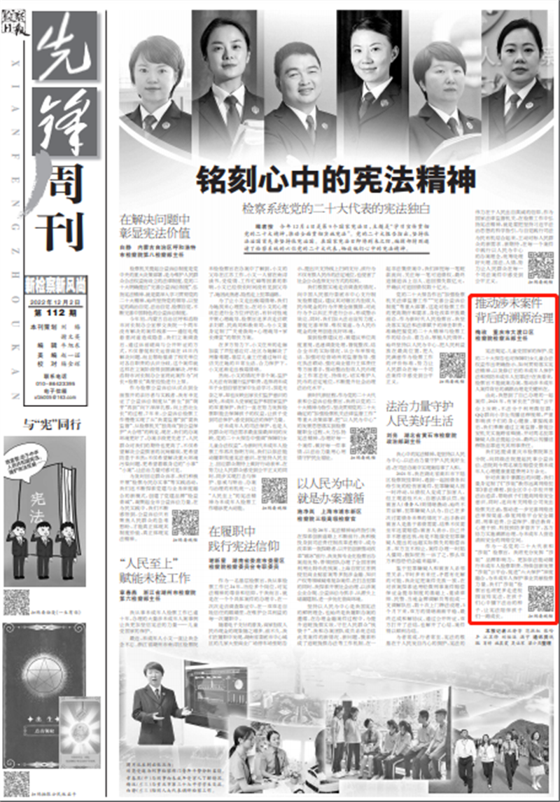 宪法规定,儿童受国家的保护。党的二十大报告也对保障妇女儿童合法权益作出明确指示。如何贯彻落实宪法精神,以及修订后的未成年人保护法和预防未成年人犯罪法?在我看来,检察官不能就案办案,推动涉未成年人案件背后的溯源治理是关键所在。