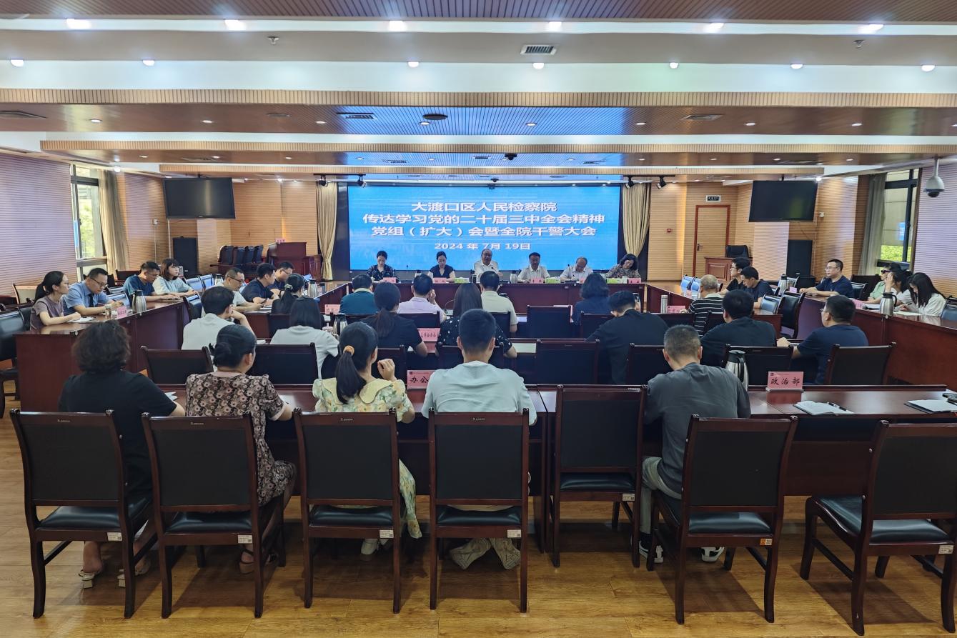 7月19日,大渡口区检察院召开党组(扩大)会暨全院干警大会,第一时间传达学习党的二十届三中全会精神。