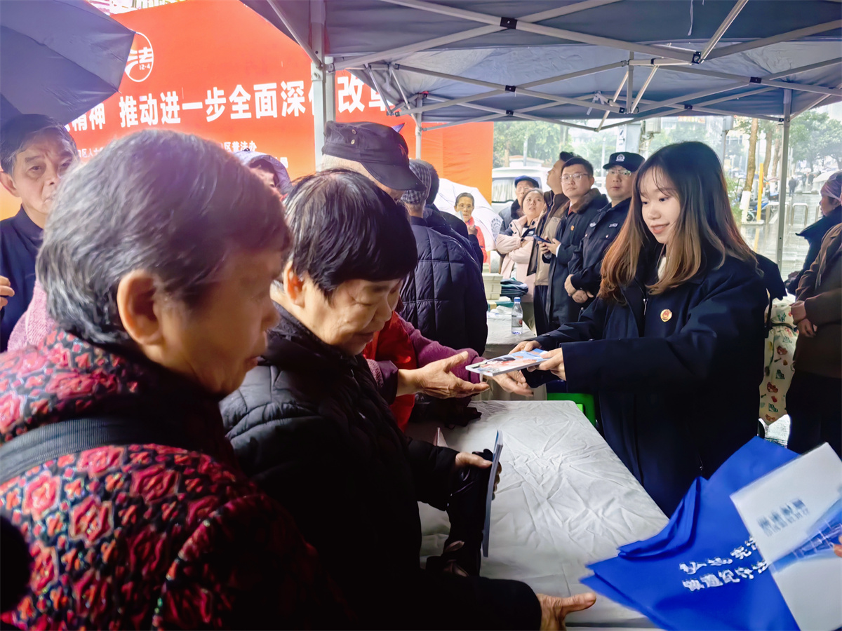 “‘莎姐’检察官我知道,相关的漫画书我还是第一次见。”12月4日,正值国家宪法宣传日,在大渡口步行街举行的宪法主题宣传活动吸引了大量群众参与,普法现场气氛热烈,普法人员和群众都充满了热情。