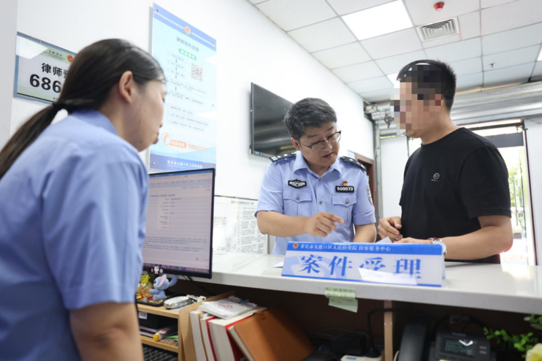 有一天,平静的接待大厅,被急促的脚步声和嘈杂声打破。一位群众火急火燎地冲进来,大声嚷嚷要找检察官讨说法。“您先消消气,有事慢慢说,我们一定解决。”姜铭身为法警大队教导员,第一时间赶到现场。他安抚群众情绪,迅速联系办案检察官。两人一起为群众解惑。最后查明,只是沟通不畅引起的误会。群众“疙瘩”解开,大厅恢复平静。