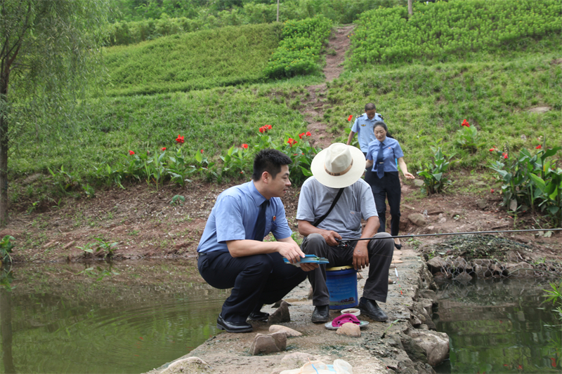 很快,短视频内容在大渡口区检察院公益诉讼办公室开展线索排查时得到了证实,6月6日,检察官实地走访了伏牛溪公园,恰好碰见10余名钓鱼者在岸边垂钓。