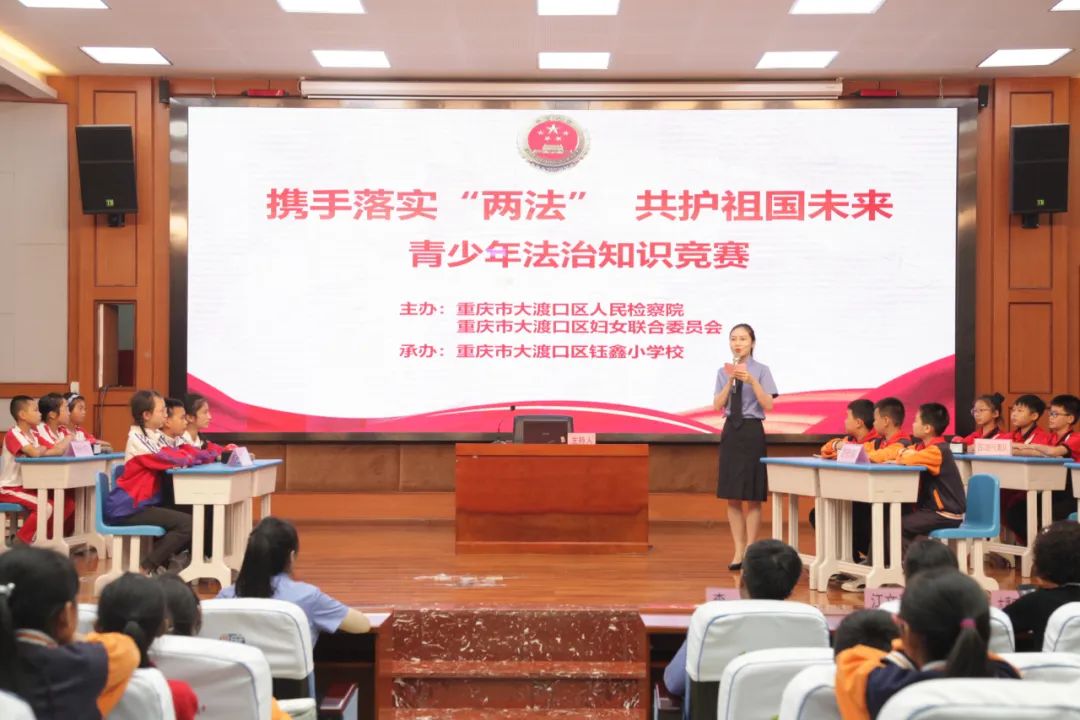 今年“六一”儿童节,是新修订的《中华人民共和国未成年人保护法》及《中华人民共和国预防未成年人犯罪法》正式施行一周年,为进一步做好未成年人司法保护相关普法宣传工作,5月27日,大渡口区检察院“莎姐”检察官走进钰鑫小学,开展了一场题为“携手落实‘两法’ 共护祖国未来”的青少年法治知识竞赛,6支参赛队伍18名选手及部分学生代表参加了此次活动。