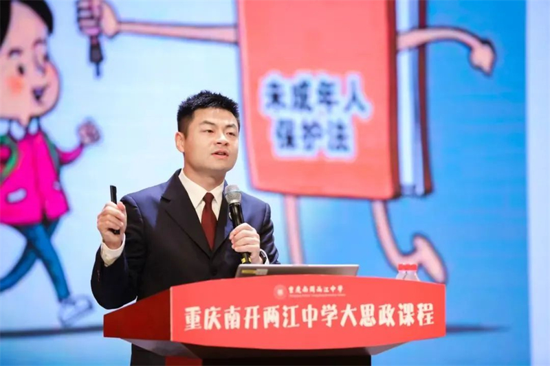 讲座最后,重庆南开两江中学副校长李南兰代表学校邀请罗文磊作为学校的法治教育指导师,并为他颁发“法治辅导员”聘书。