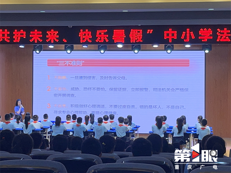 暑假即将到来,未成年学生溺水、网络沉迷、欺凌、性侵和网络诈骗等安全事件,也进入易发多发时期。为了做好中小学生暑期安全教育,6月18日,重庆市2024年“共护未来、快乐暑假”中小学法治安全课在巴南区珠江城小学开讲。“莎姐”检察官、法官、民警、心理专家和教师围绕防性侵、防欺凌、防溺水、防网络沉迷和诈骗、心理健康等主题,与学生面对面授课。