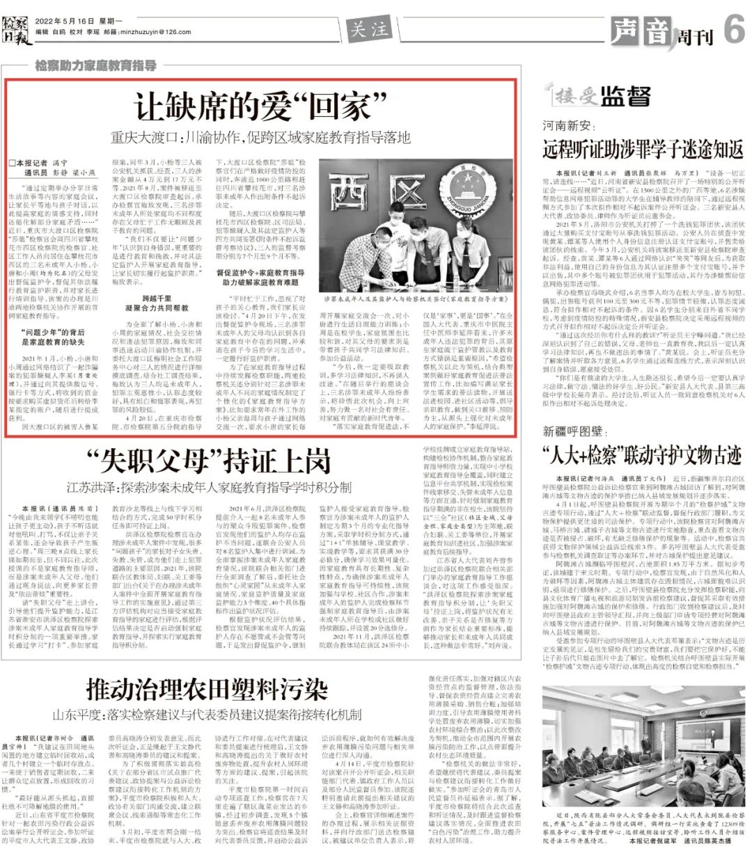 检察日报:让缺席的爱“回家”