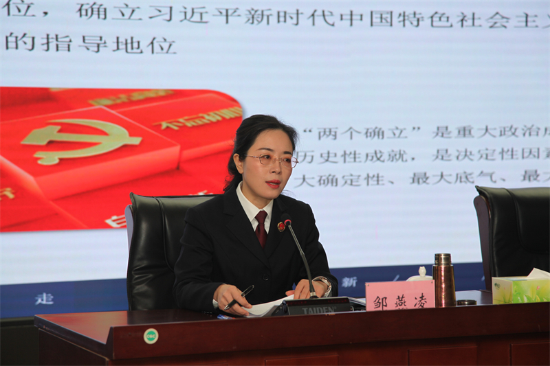 会上,邹燕凌从全面准确把握党的二十大会议的主要成果和重大意义,全面准确把握党的二十大报告的主要内容和精神实质,全面准确把握党的二十大赋予检察机关的更重政治责任,全面准确把握党的二十大关于全面从严治党的部署要求,全面学习、全面把握、全面落实党的二十大精神五个方面进行了详细讲解。邹燕凌强调,学习宣传贯彻好党的二十大精神,是当前和今后一个时期的重要政治任务。要紧紧围绕高质量发展,能动履行法律监督职责、紧紧围绕国家安全和社会稳定,能动履行法律监督职责、紧紧围绕全面依法治国,能动履行法律监督职责、紧紧围绕完善公益诉讼制度,能动履行法律监督职责。