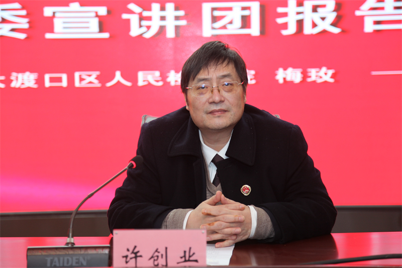 根据市检察院安排,12月30日下午,市检察院学习贯彻党的二十大精神宣讲团成员、万州区检察院党组书记、检察长邹燕凌同志在我院作专题宣讲报告。大渡口区检察院党组书记、检察长许创业主持会议,全院干警参加会议。