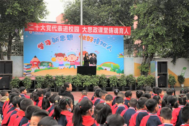 为进一步做好未成年人保护宣传工作,守护未成年人合法权益,4月7日,党的二十大代表、大渡口区检察院“莎姐”宣讲团成员梅玫,受邀到跳蹬小学开展党的二十大精神及未成年人司法保护主题宣讲,与学校师生同上一堂思政课。
