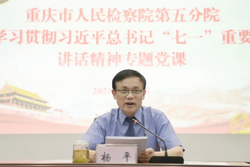 9月7日上午,重庆市检察院第五分院党组书记、检察长杨平为全院干警上学习贯彻习近平总书记“七一”重要讲话精神专题党课。