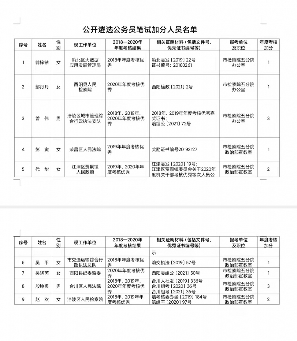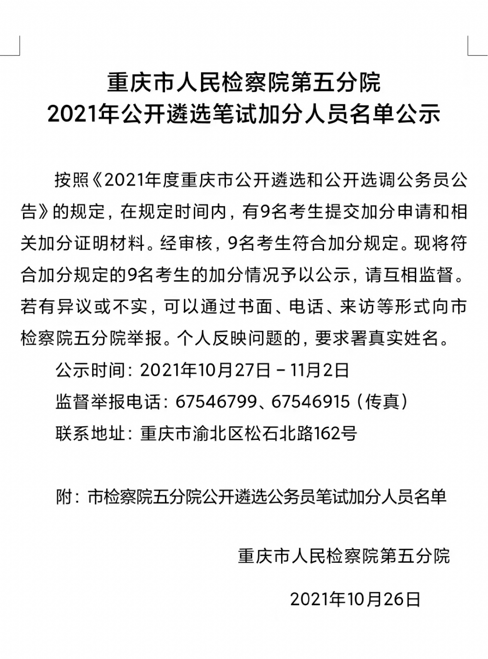 卡提诺论坛 第五分院2021年公开遴选笔试加分人员名单公示