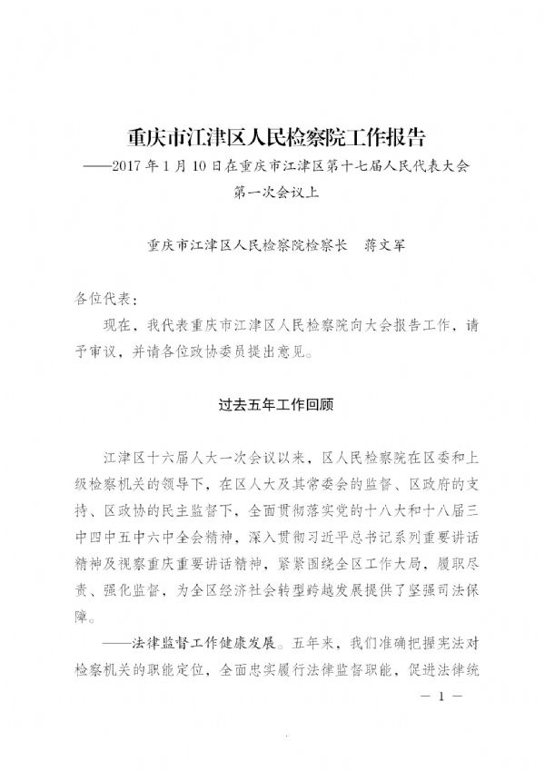 重庆市江津区人民检察院工作报告(2017年1月10日 蒋文军)