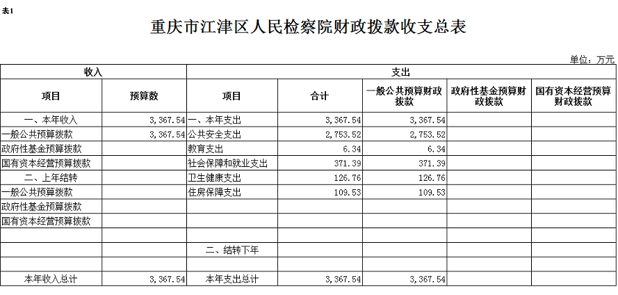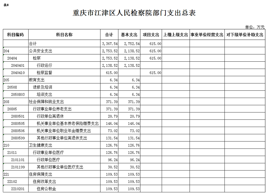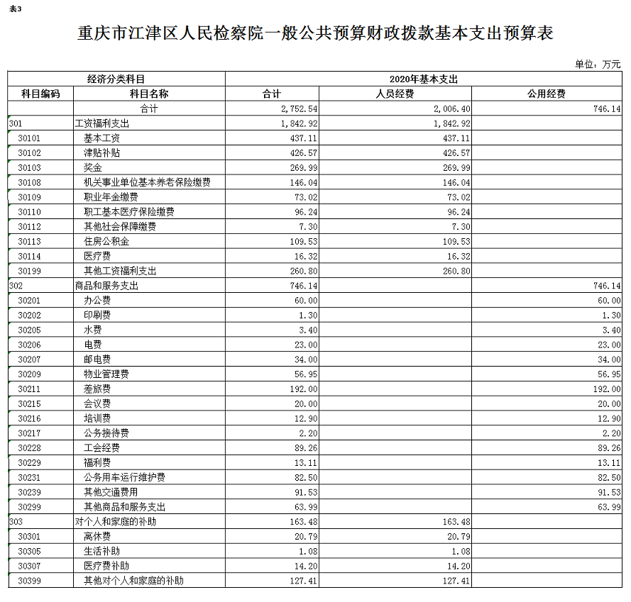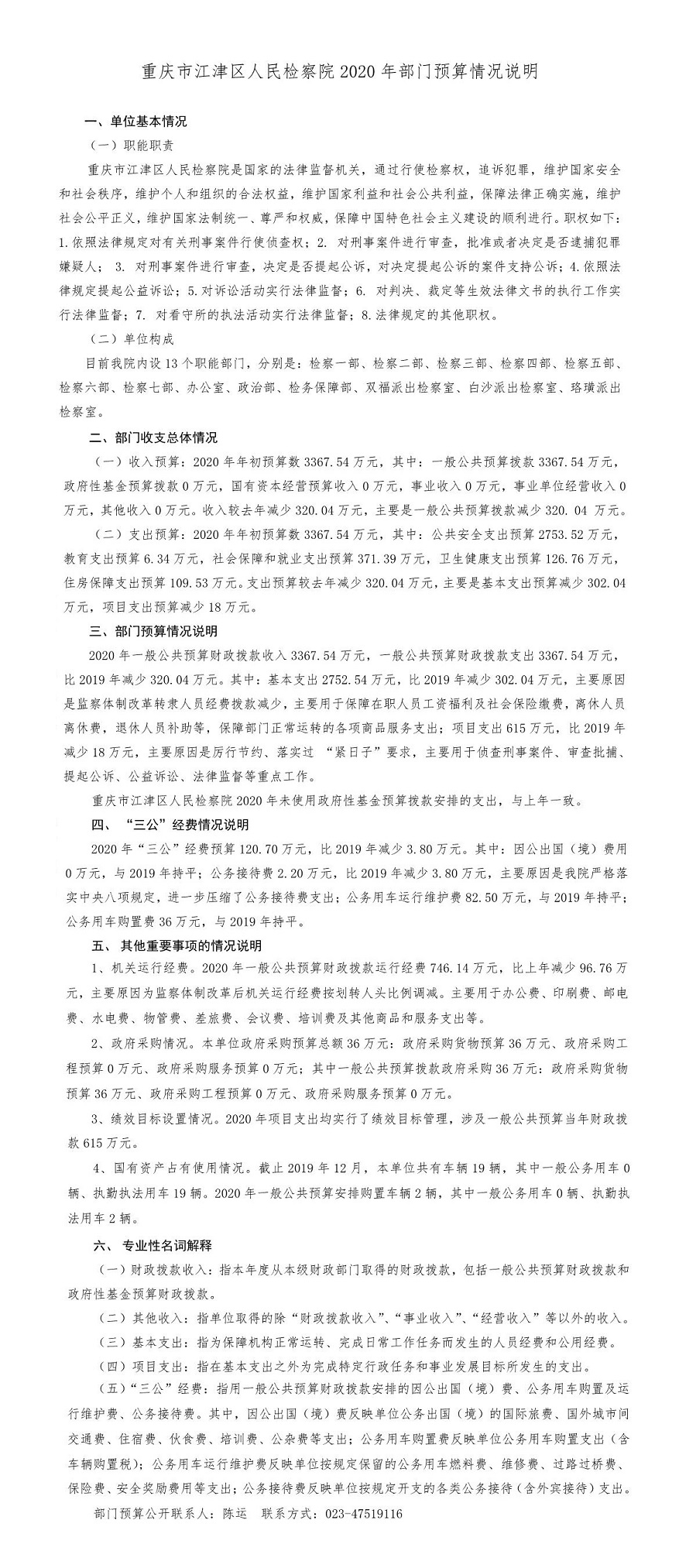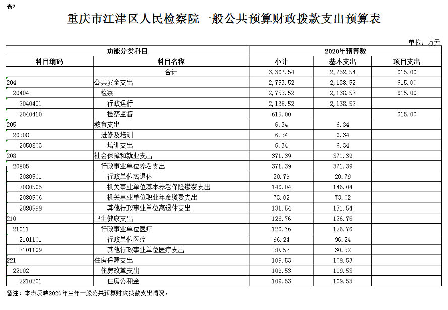 重庆市江津区人民检察院2020年部门预算情况说明