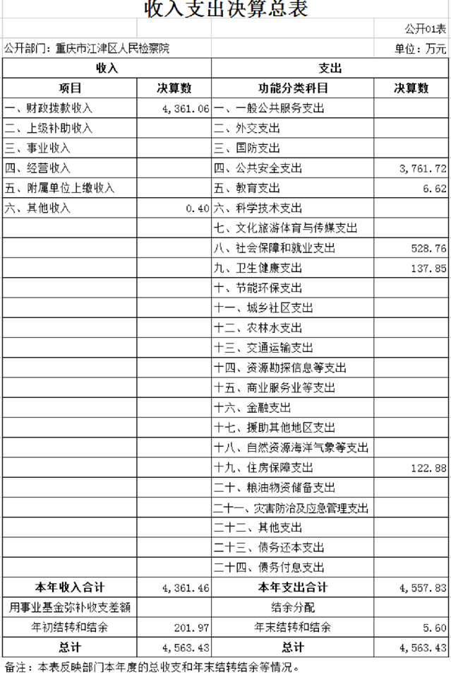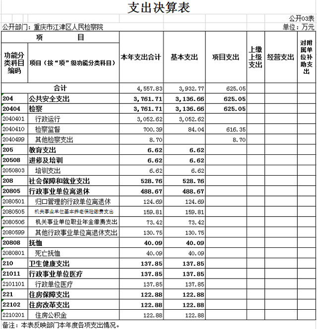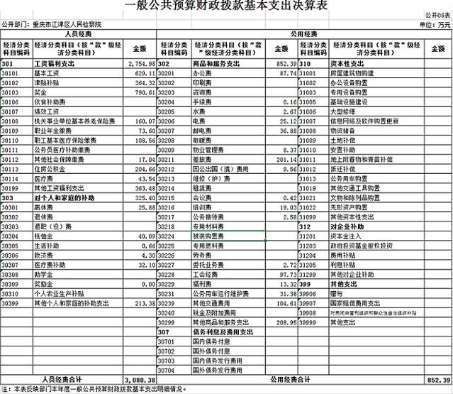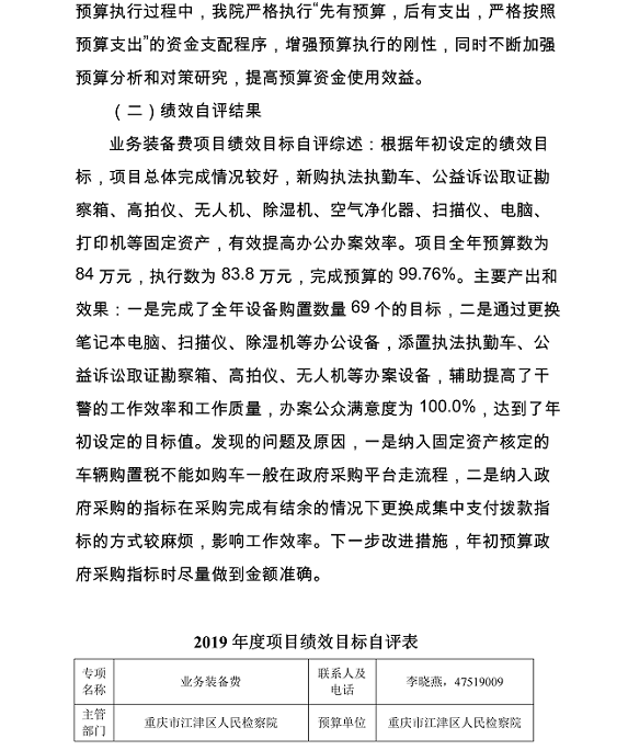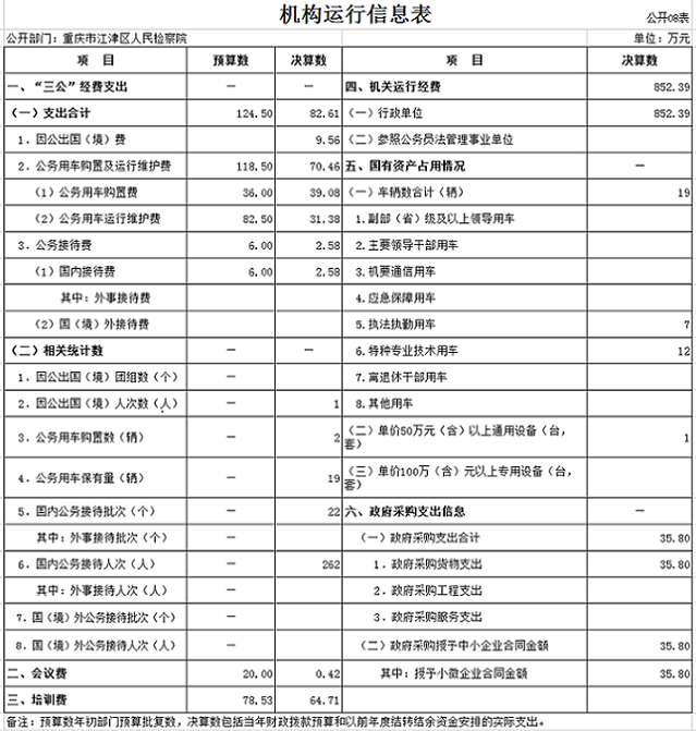 重庆市江津区人民检察院2019年度部门决算公开