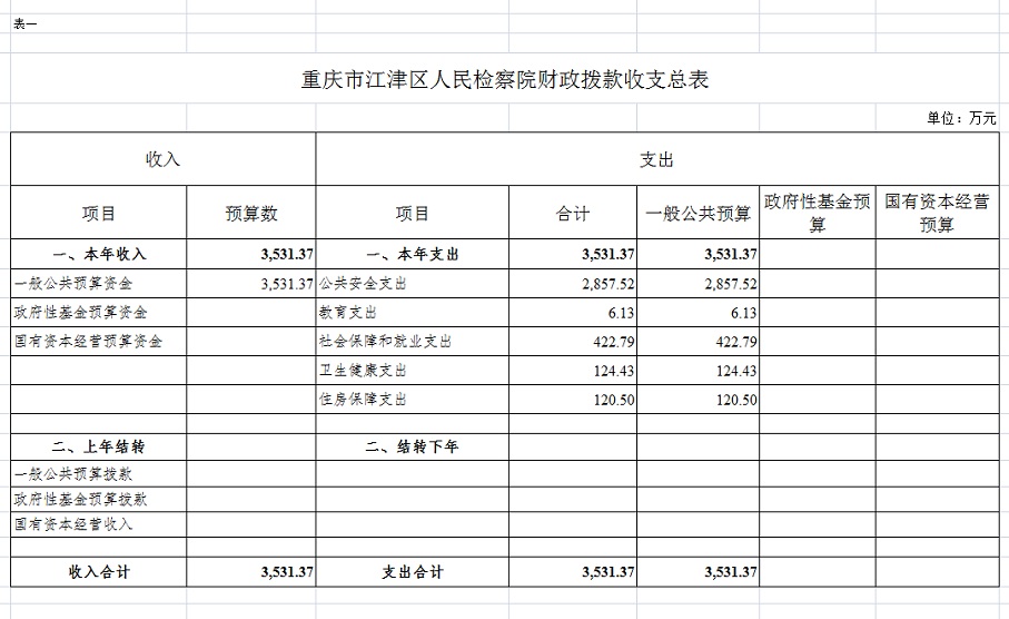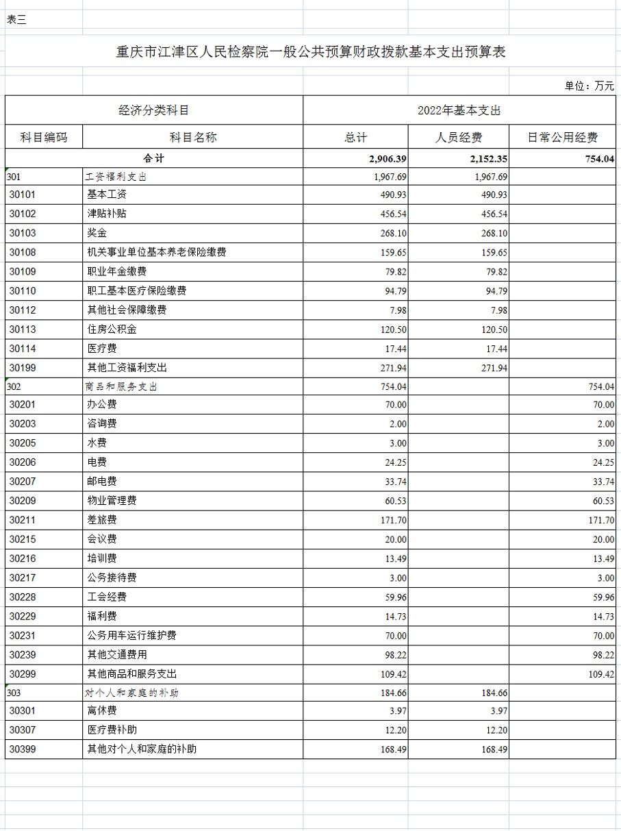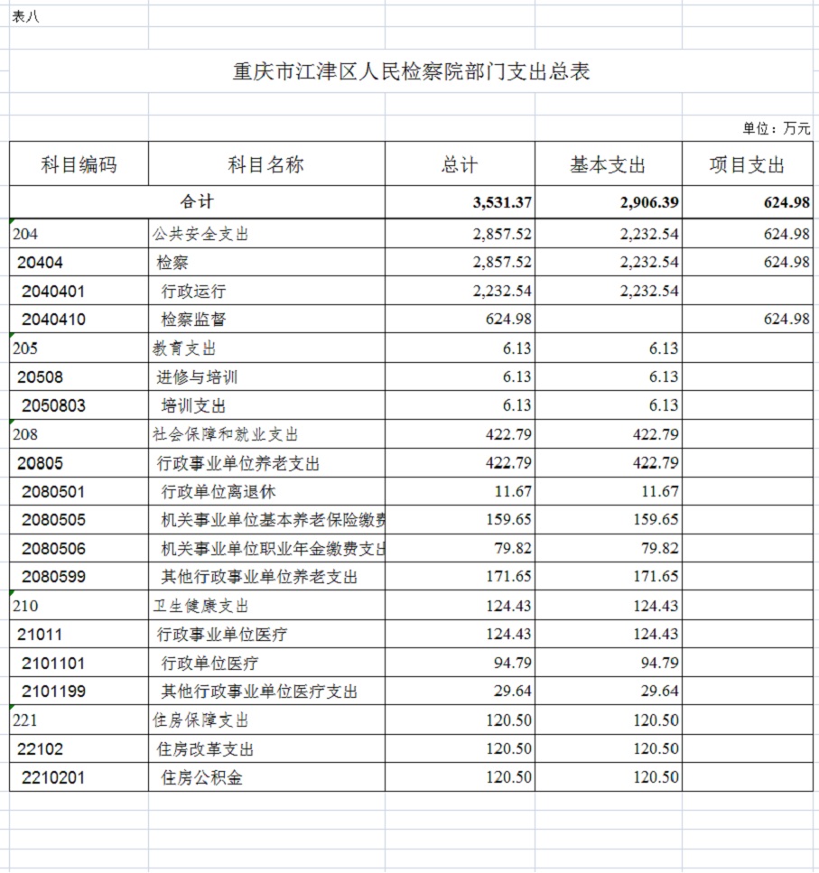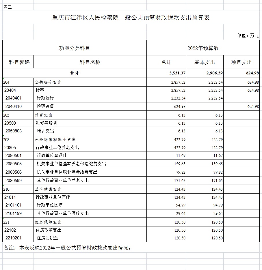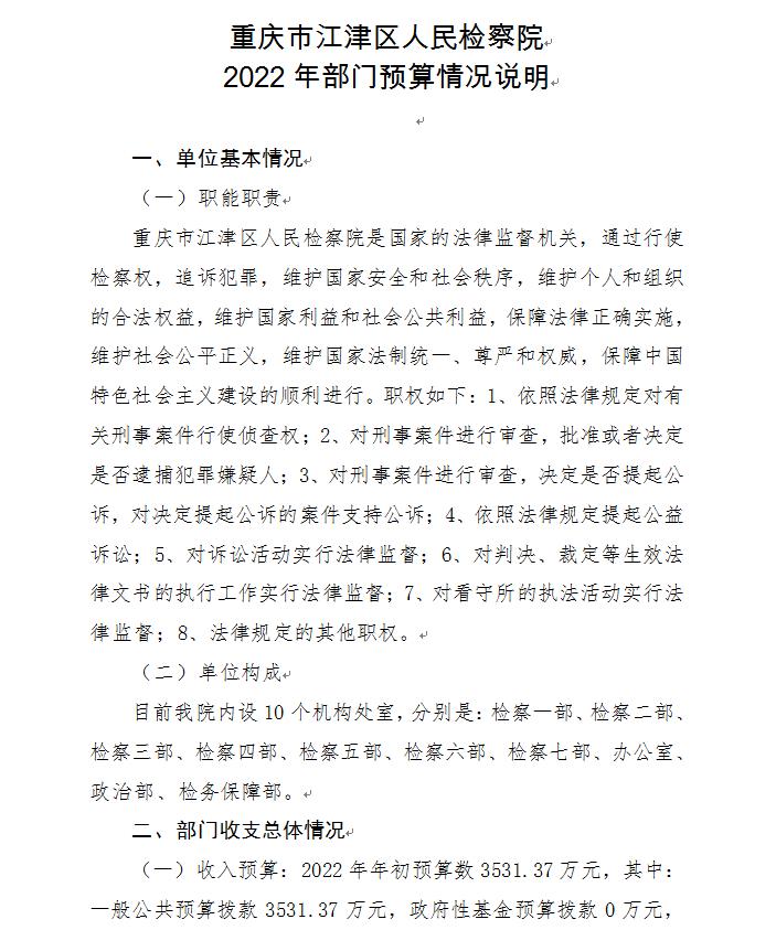 重庆市江津区人民检察院2022年部门预算公开