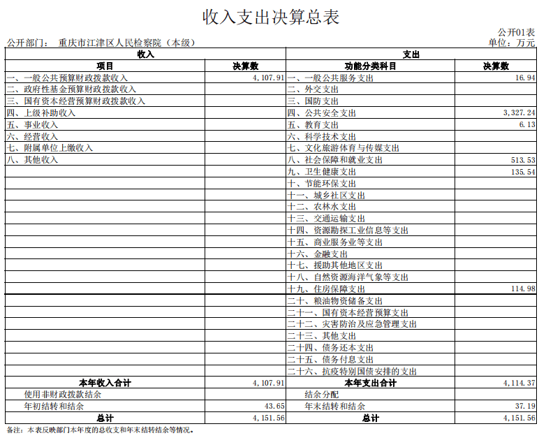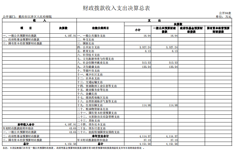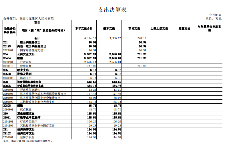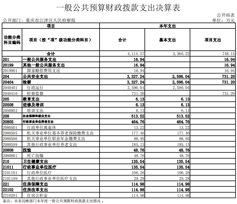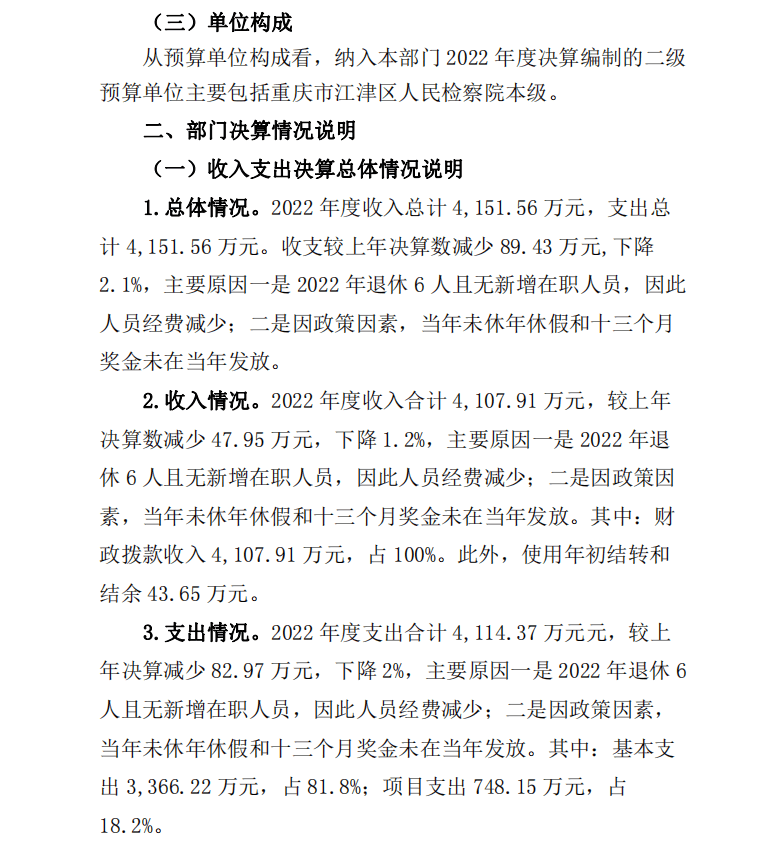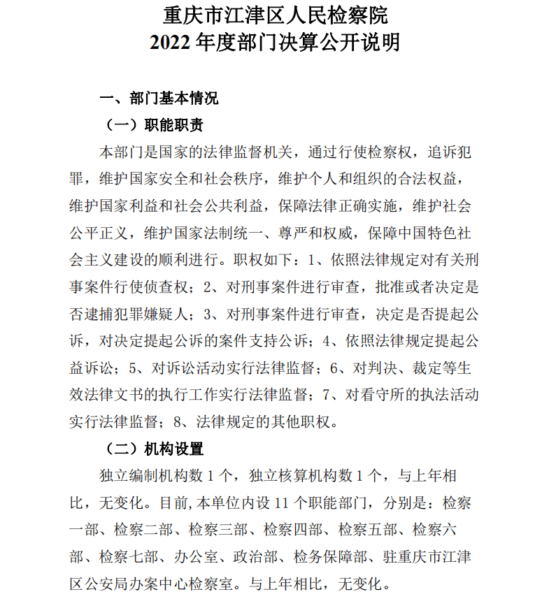 重庆市江津区人民检察院2022年部门决算公开
