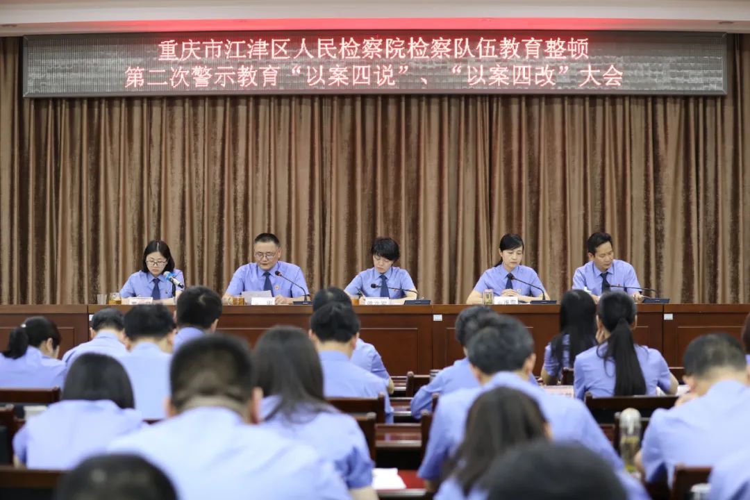 2021年5月20日,重庆市江津区人民检察院召开检察队伍教育整顿第二次警示教育“以案四说”、“以案四改”大会,会议传达了全市政法队伍教育整顿查纠整改环节工作推进会精神。