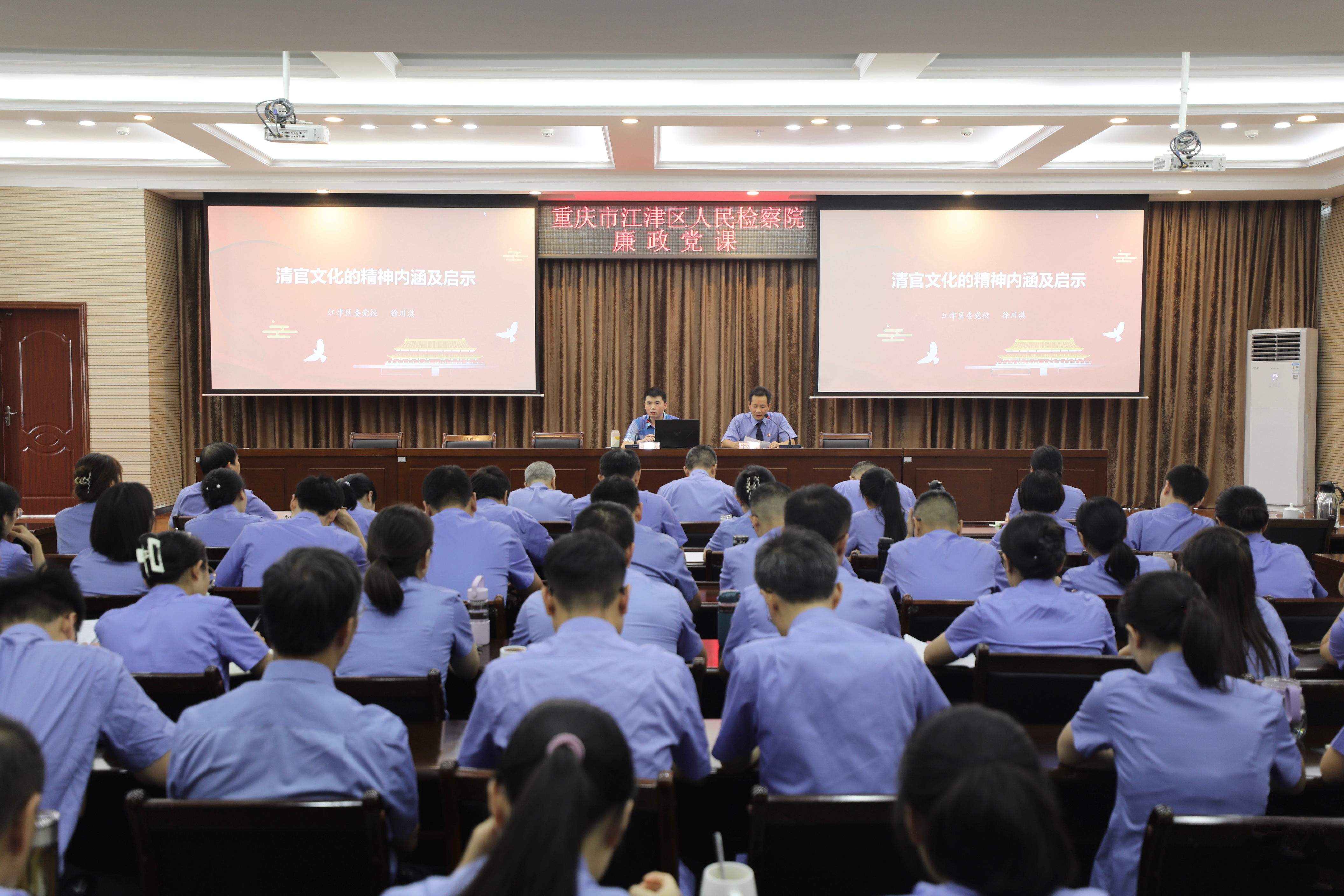 为全面加强党风廉政建设,增强干警廉洁自律意识,扎实推进清廉检察院建设示范试点工作,2023年9月18日,江津区检察院邀请区委党校教研室主任徐川淇给全体检察干警带来一堂深刻的廉政党课,引导干警提高站位、端正态度、扛起责任,从严从细从实筑牢廉洁从检的思想堤坝。