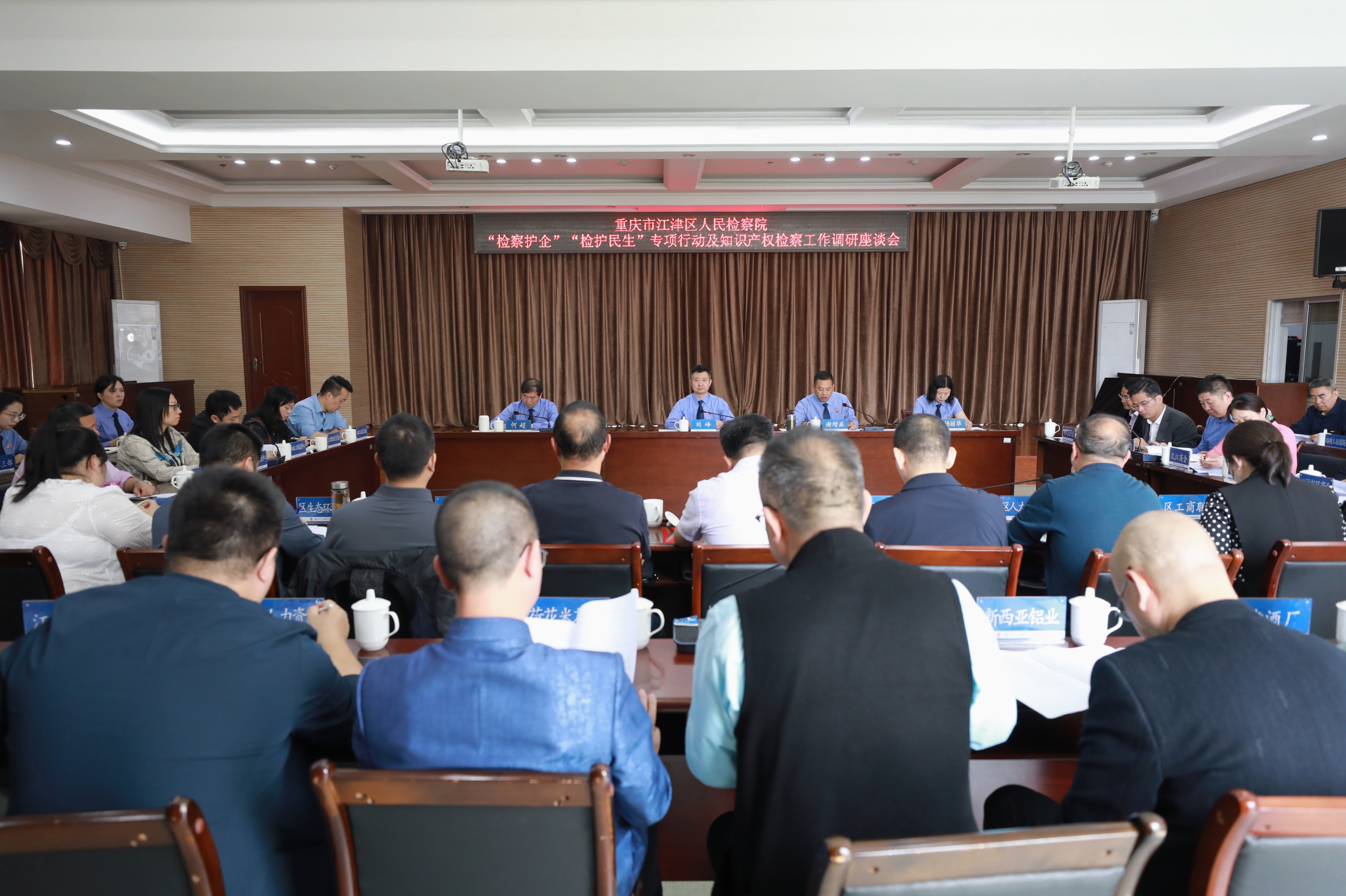 为进一步推动“检察护企”“检护民生”专项行动走深走实、护航江津经济社会高质量发展,4月26日,江津区检察院邀请区委政法委、区市场监管局、区工商联等9家单位及市人大代表、政协委员、商会代表、企业代表召开座谈会。会议由江津区检察院党组成员、副检察长谢增益主持,院党组书记、检察长刘峰出席会议,院内相关部门负责人参加座谈。
