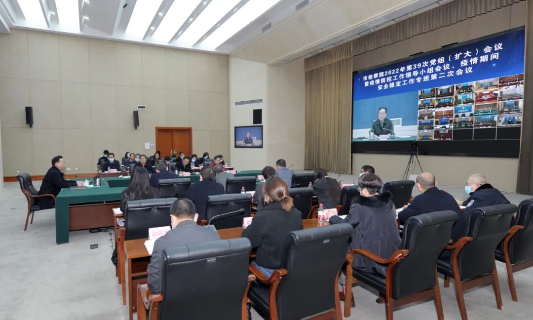 12月1日,市检察院党组书记、检察长贺恒扬主持召开党组(扩大)会暨疫情防控工作领导小组会,传达学习习近平总书记关于疫情防控工作的重要指示精神,贯彻落实中央政法委专题会议、市疫情防控工作领导小组会议、最高检《关于依法助力打赢常态化疫情防控攻坚战的通知》精神,安排部署有关工作。贺恒扬强调,各级院要进一步提高政治站位、压实办案责任、服务发展大局,统筹抓好疫情防控和检察办案,通过依法办准办好涉疫案件,助力我市疫情防控工作始终在法治轨道上运行。