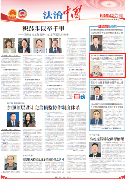 2023年3月13日,《检察日报》第5版“法治中国·两会特刊”专版刊登《全国人大代表、重庆乌江画廊旅游开发有限公司阿依河分公司经营管理部经理张尧:为乡村振兴提供更加有力检察保障》一文,内容如下: