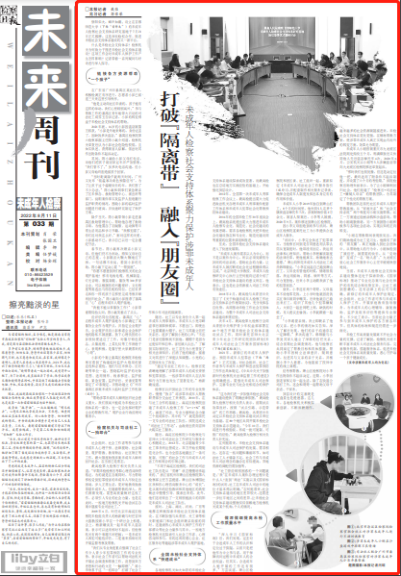 次年4月,最高检第九检察厅会同共青团中央维护青少年权益部部署在40个地方开展未检社会支持体系建设试点工作。同时委托首师大北京青少年社会工作研究院团队研发《未成年人司法社会工作服务国家标准》(下称《国家标准》)。