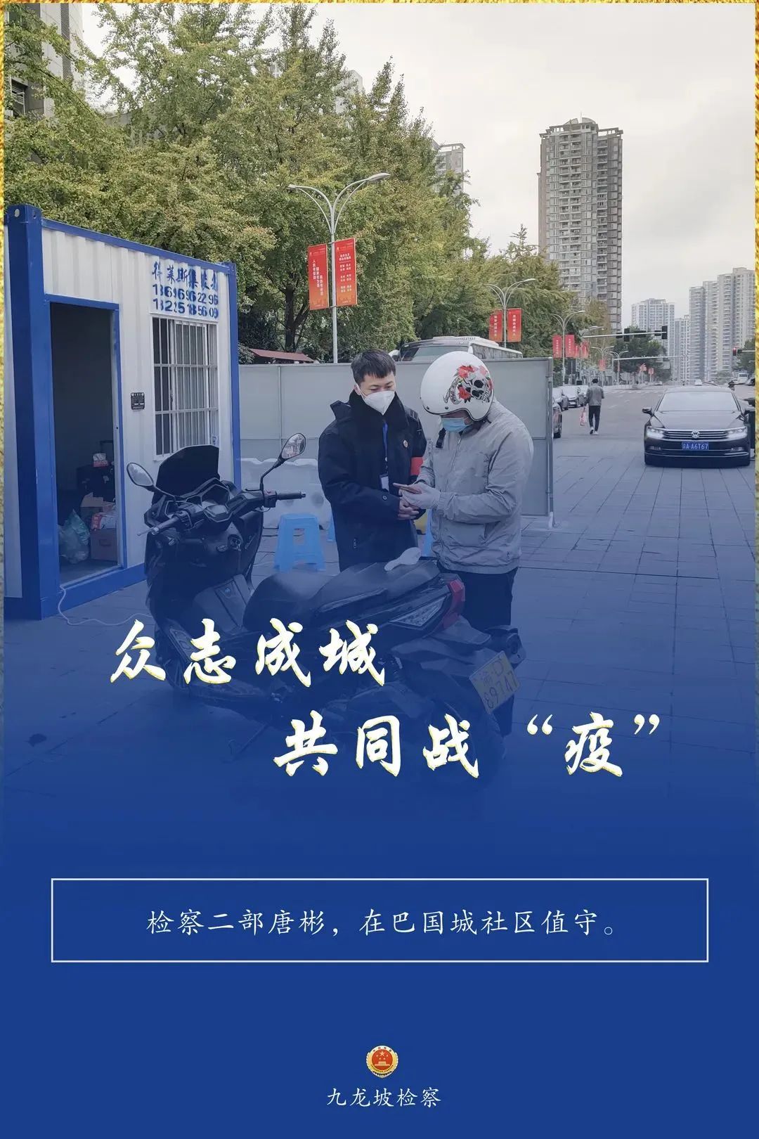 连日来,九龙坡区疫情防控形势复杂严峻。九龙坡区检察院疫情防控志愿者们,他们始终坚守一线、不畏险阻,他们的身影活跃在疫情防控的各个环节,与街道、社区工作者们并肩奋战、共同战“疫”,为全区疫情防控工作增添一抹“检察蓝”,用实际行动诠释着检察人的使命担当。
