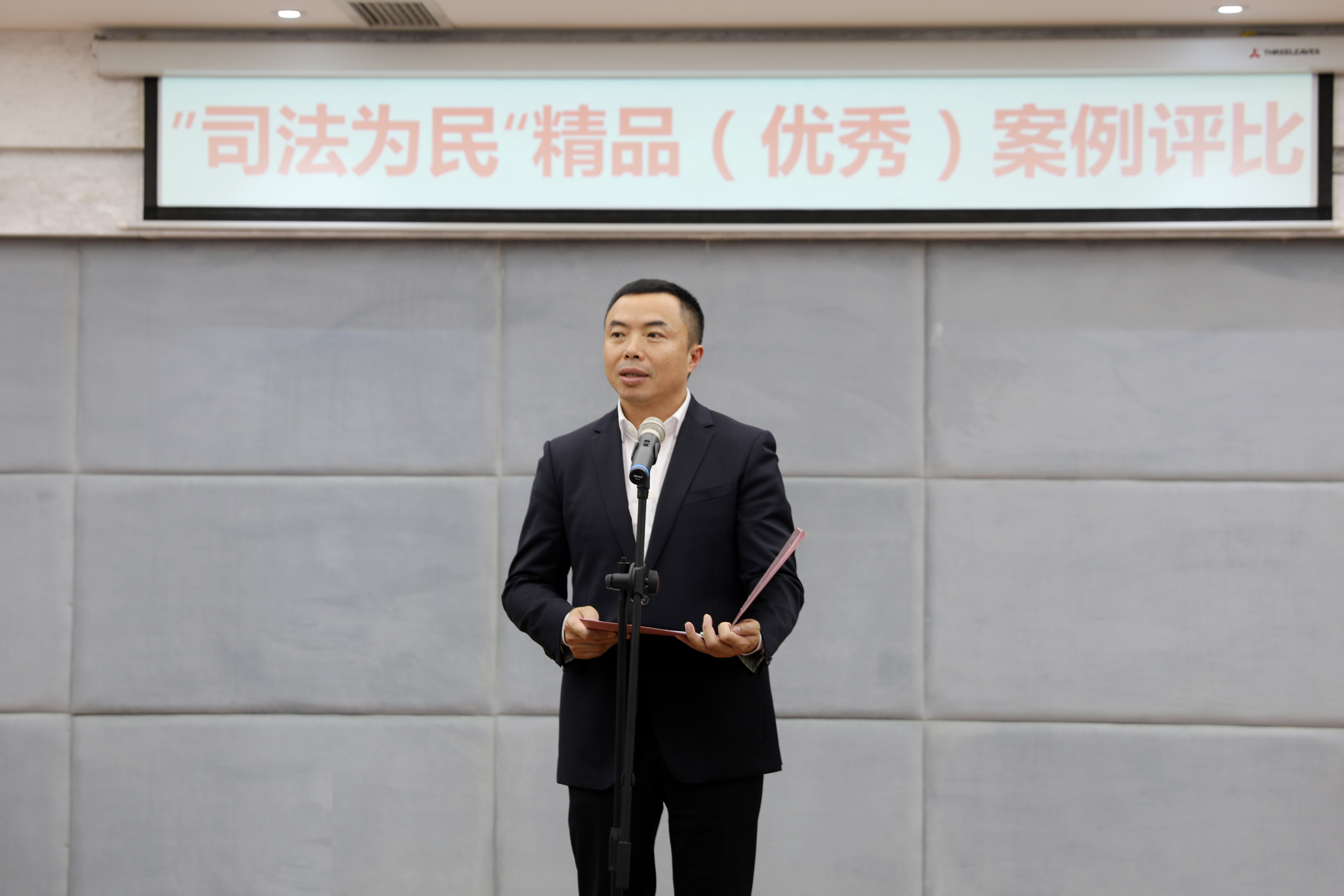 区委常委、政法委书记陈品明,区政协副主席程涛为获评“司法为民”精品案例的选手颁奖