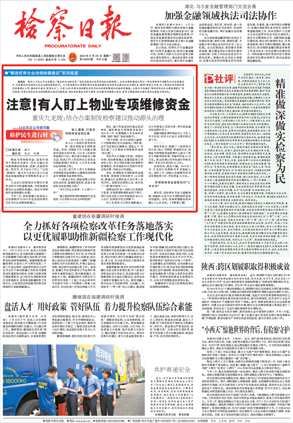 “物业专项维修资金的安全关系千家万户,牵涉老百姓的切身利益。”重庆市人大代表,九龙街道盘龙新城社区党委书记、居委会主任冯靓表示,检察机关依托办案制发检察建议,有效排除了物业专项维修资金管理隐患,推动了该领域的源头治理。