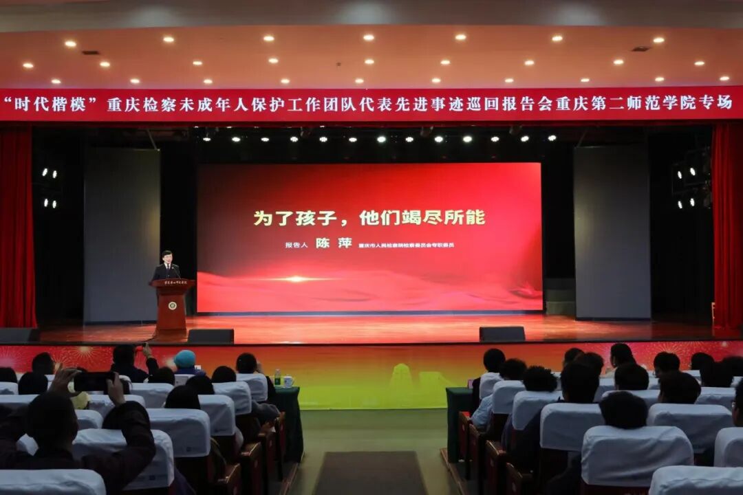 这是一场关于守护与成长的真情讲述,一次榜样力量与思政教育的深度融合。11月13日,“时代楷模”卡提诺论坛 未成年人保护工作团队(以下简称渝检护“未”团队)代表先进事迹巡回报告会在重庆第二师范学院举行,团队代表与相关讲述人共同呈现了一堂感人至深、催人奋进的“大思政课”。