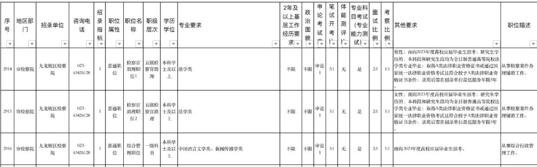 九龙坡区检察院2023年度公开招录干警3名