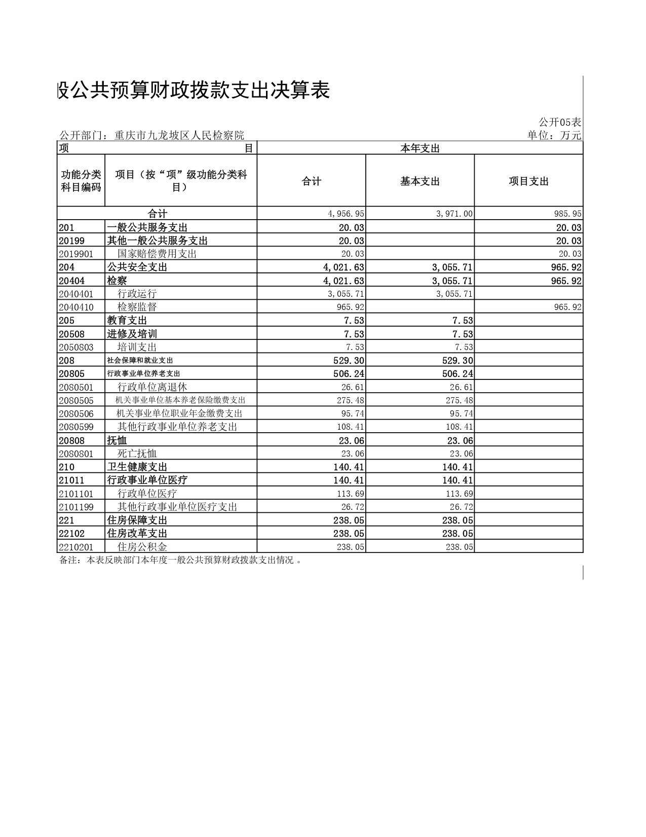重庆市九龙坡区人民检察院2022年度部门决算情况说明